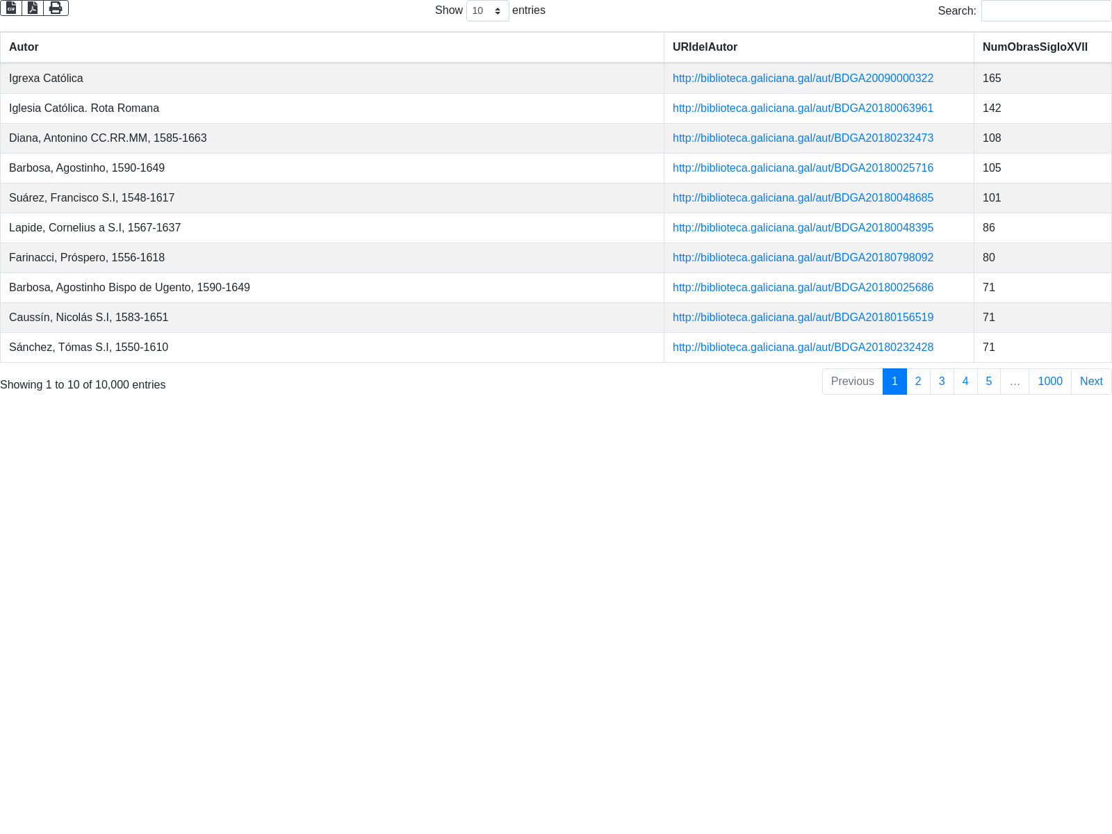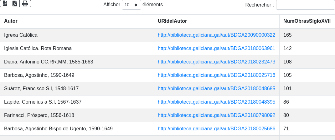 Works printed in the seventeenth century with their authors in the Biblioteca Dixital de Galicia