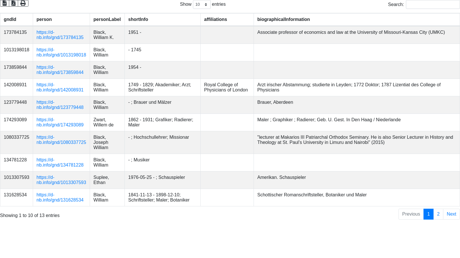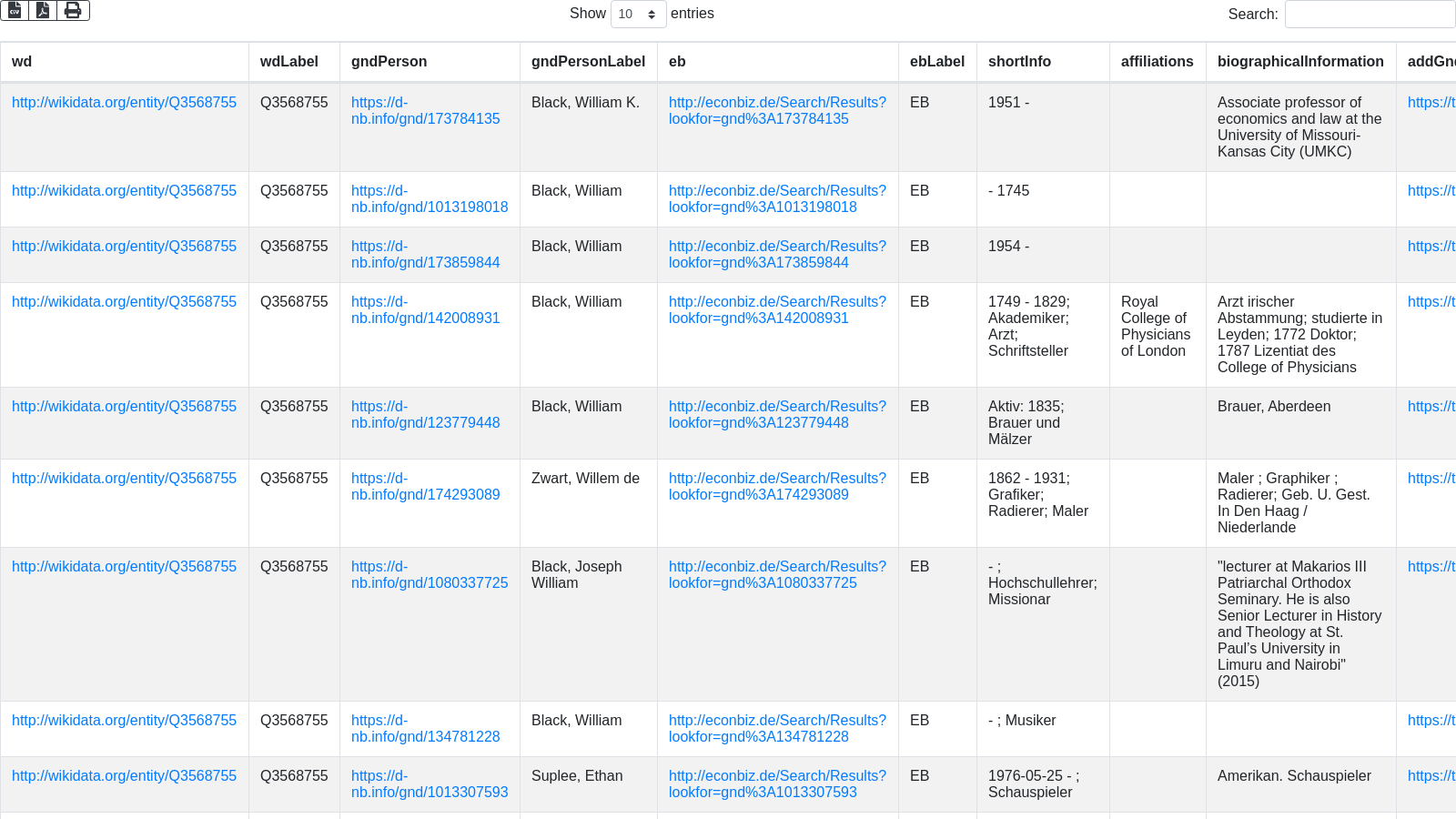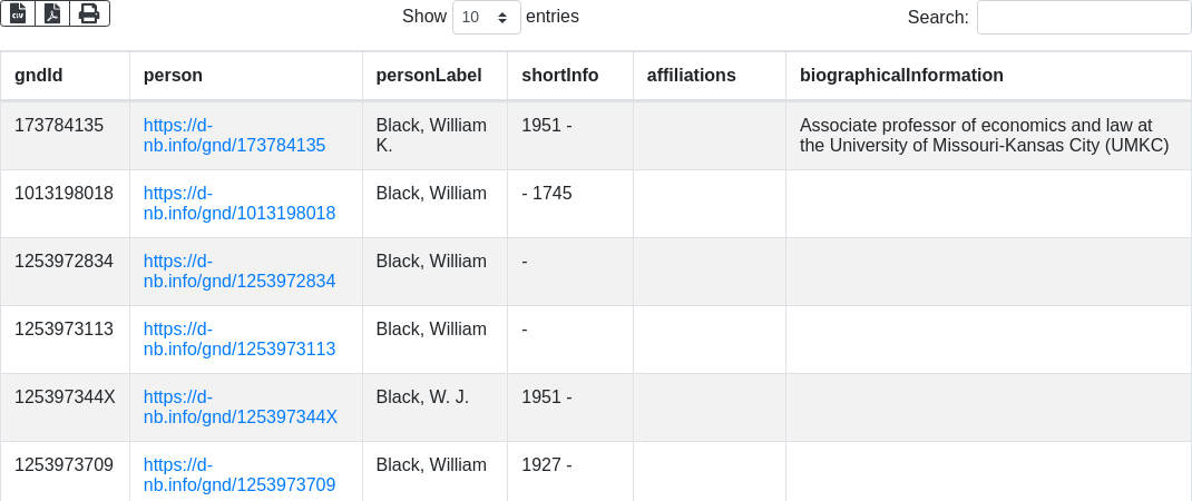 Text search for persons, with additional data for identification and link to add a GND ID to an Wikidata item via QuickStatements2 link