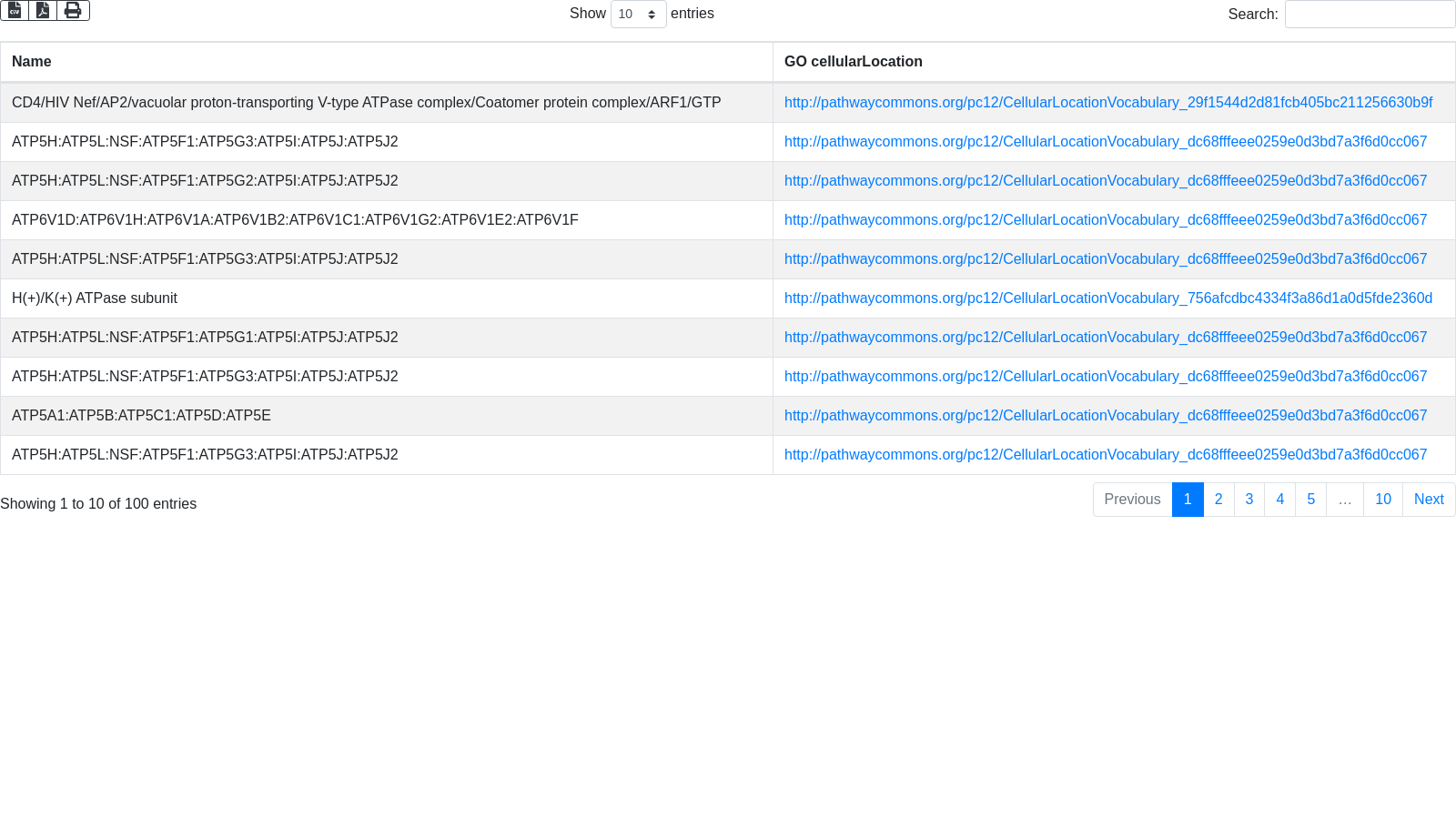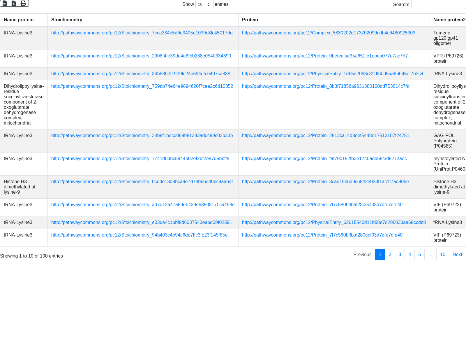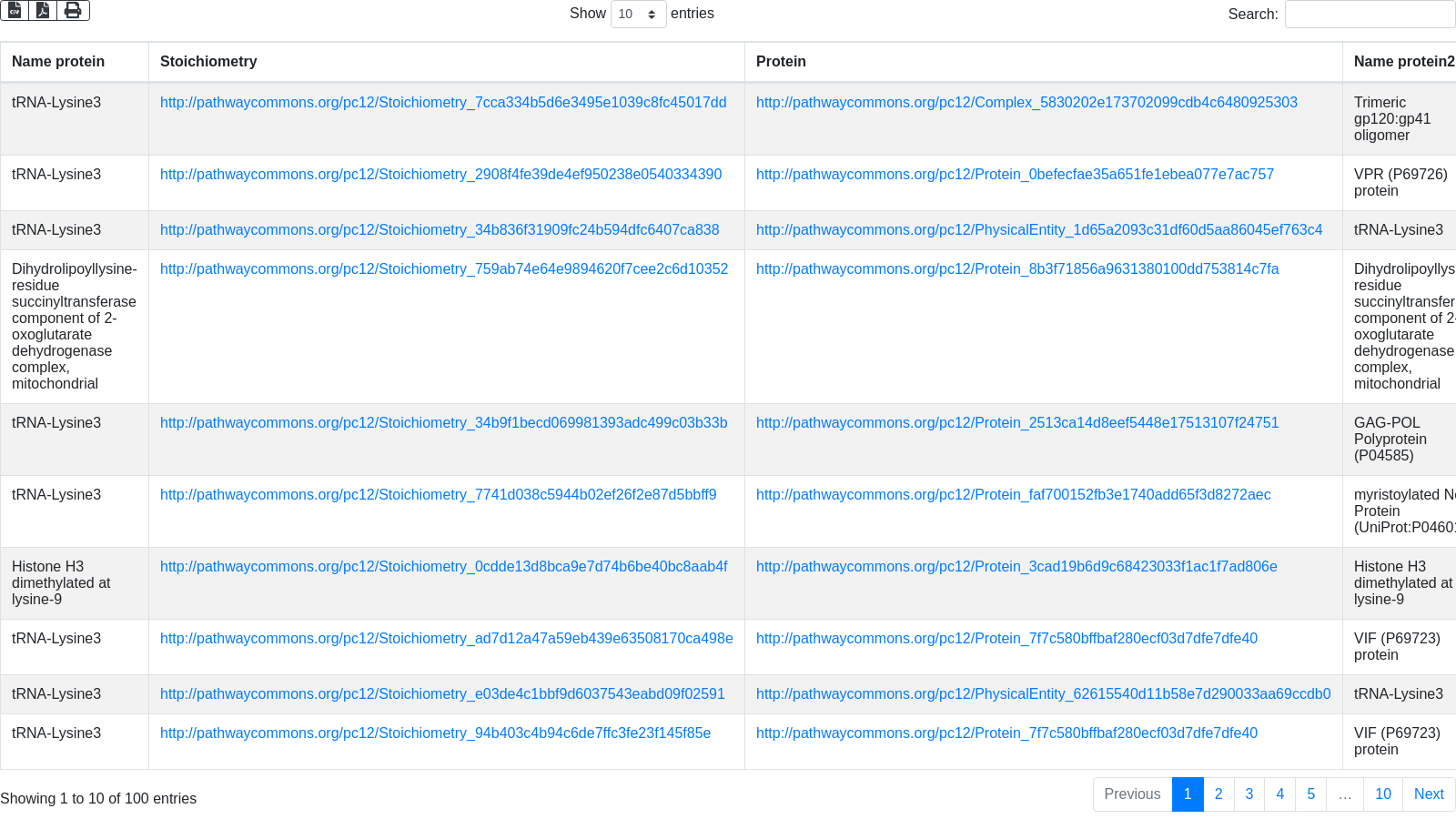 If you see a shield icon Insecure content shield icon appearing in the address bar (right side), you can click on this icon to download the insecure content. See details Display all protein stored in Pathway commons dataset. Display a maximum of 100 results.