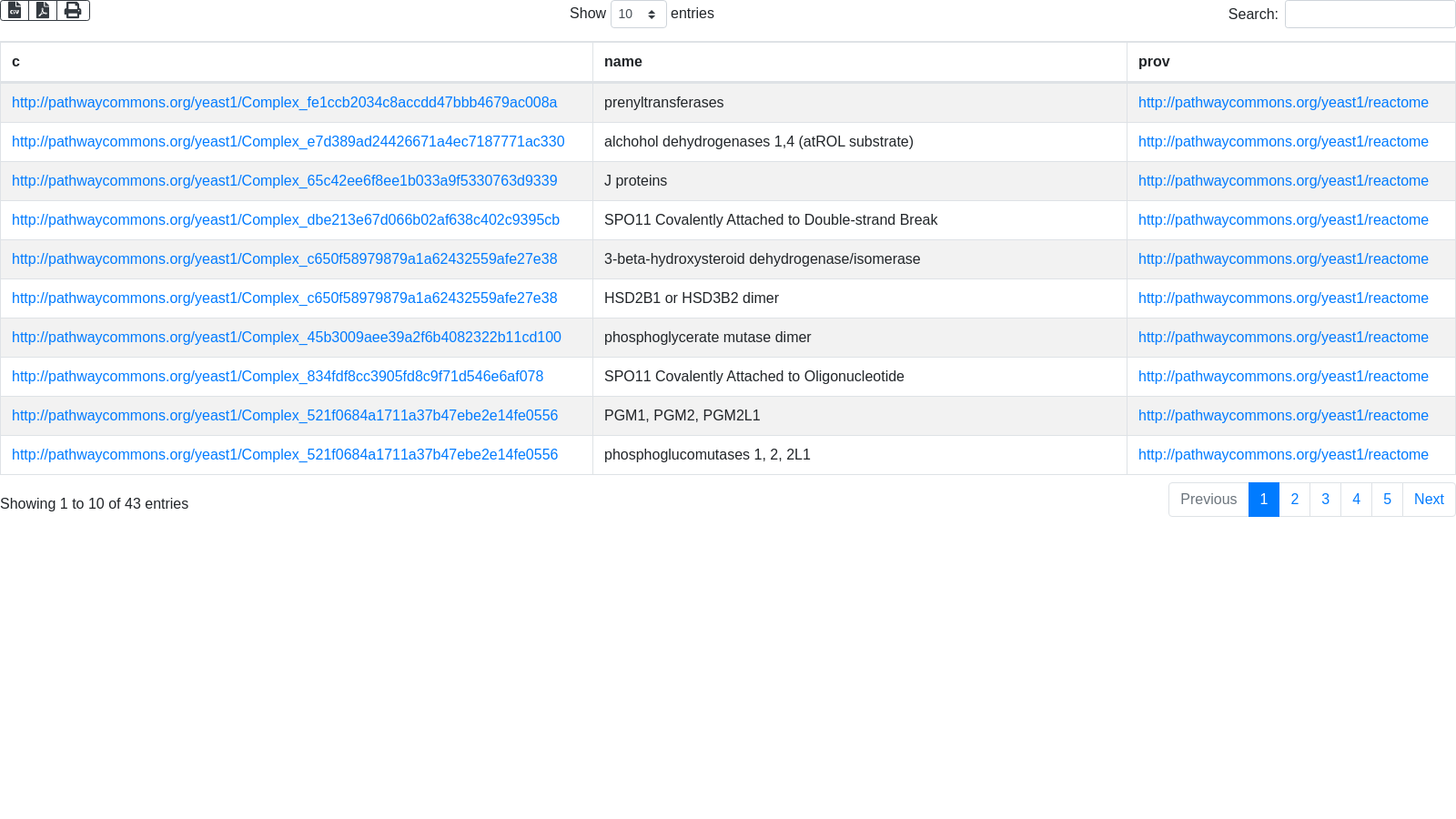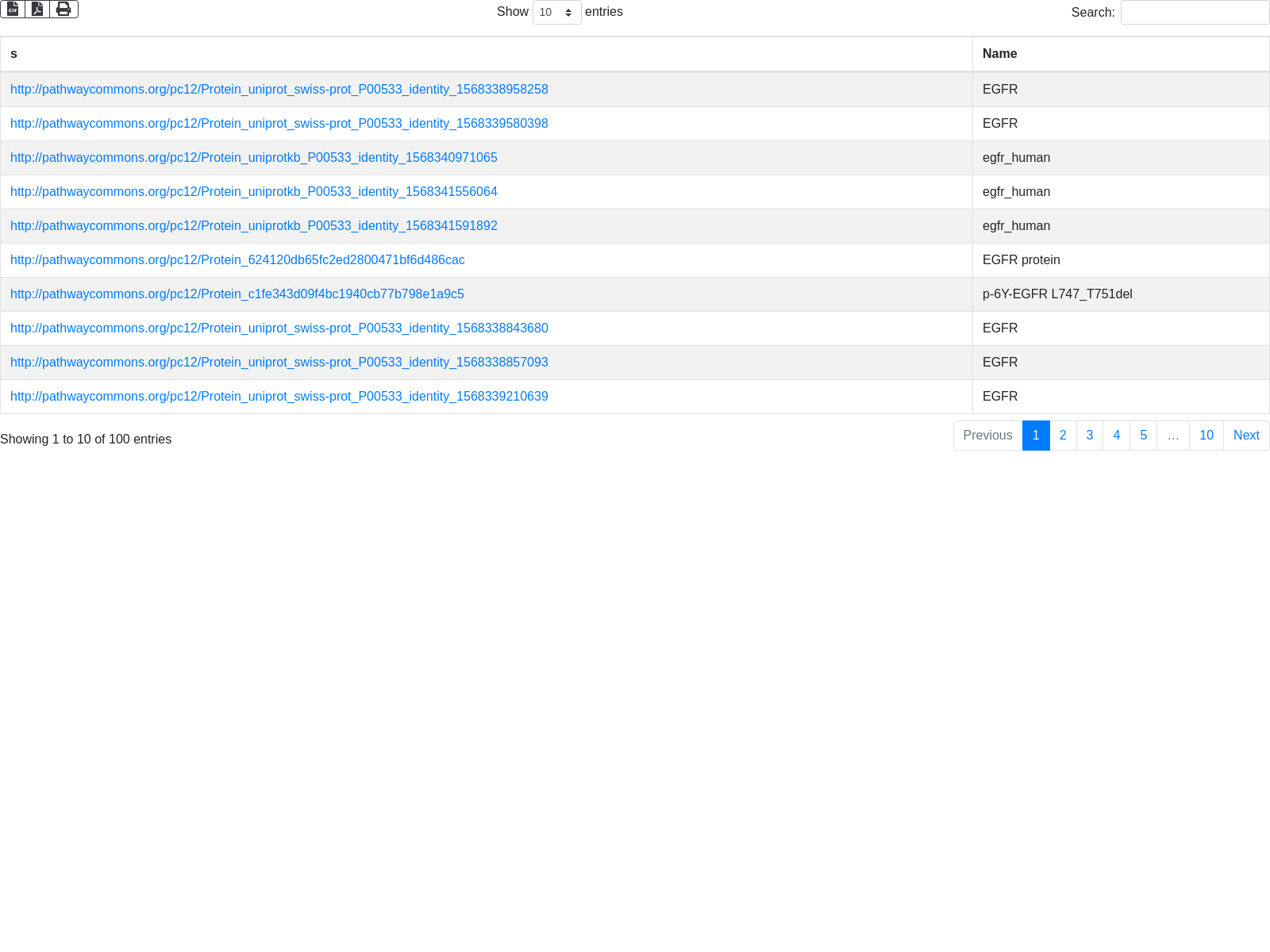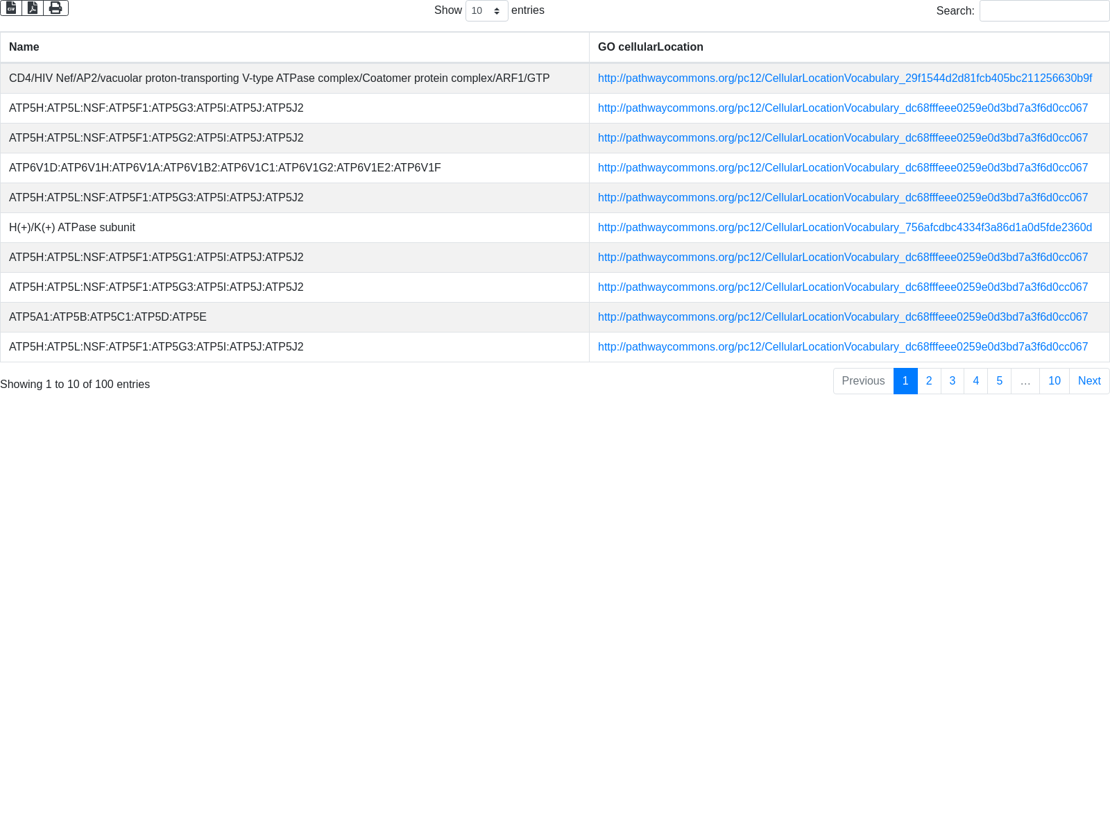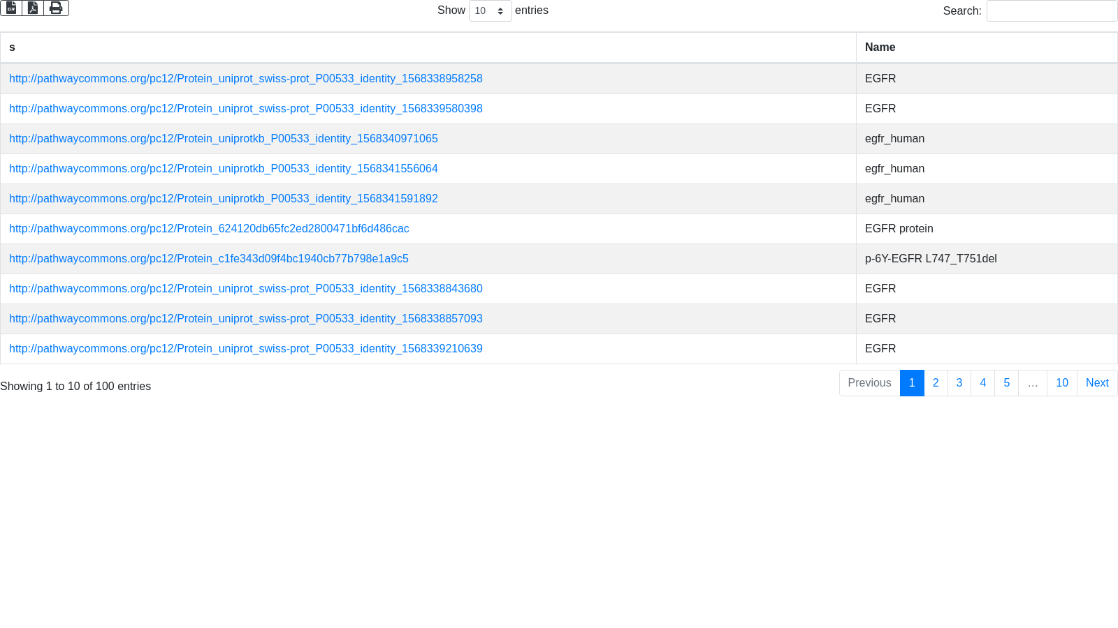 If you see a shield icon Insecure content shield icon appearing in the address bar (right side), you can click on this icon to download the insecure content. See details Display all protein stored in Pathway commons dataset. Display a maximum of 100 results.