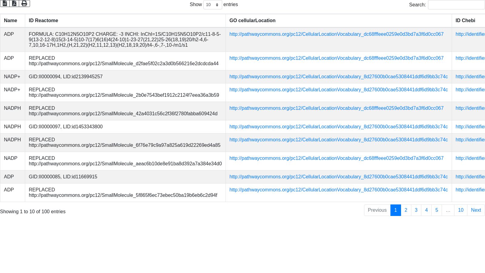 If you see a shield icon Insecure content shield icon appearing in the address bar (right side), you can click on this icon to download the insecure content. See details Display information about ID Reactome, cellular location in GO terms and ID from CheBi database based on a drug or metabolite ADP. Display a maximum of 100 results.