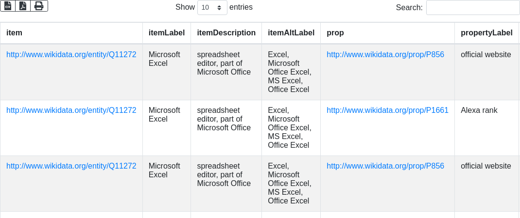 + "SELECT ?item ?itemLabel ?itemDescription ?itemAltLabel ?prop ?propertyLabel ?propertyValue ?propertyValueLabel ?qualifier ?qualifierLabel ?qualifierValue WHERE { \n"