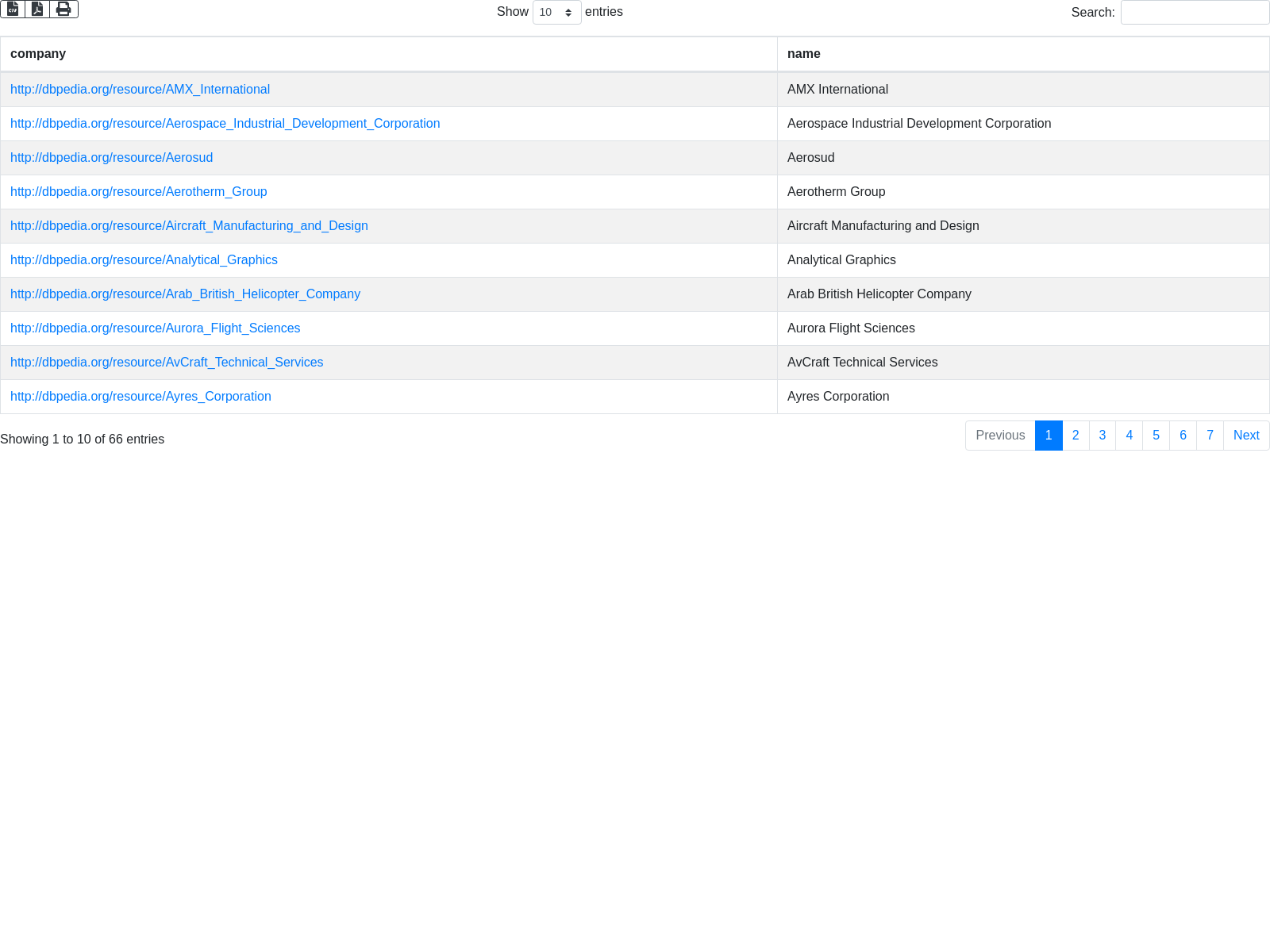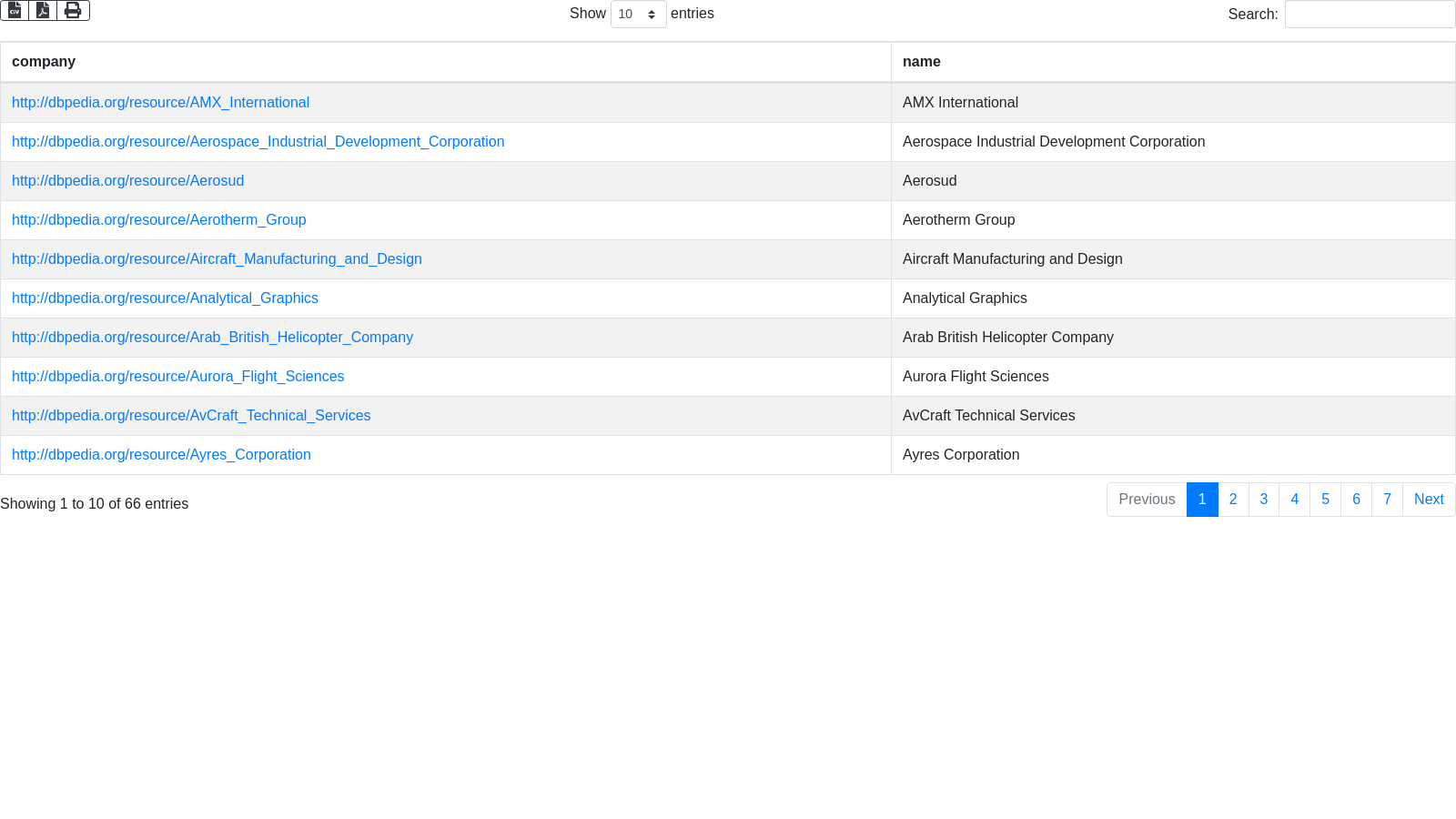 List of aeropace constructors according to DBpedia-Live