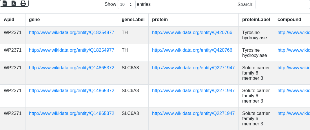 'SELECT ?wpid ?gene ?geneLabel ?protein ?proteinLabel ?compound ?compoundLabel '...