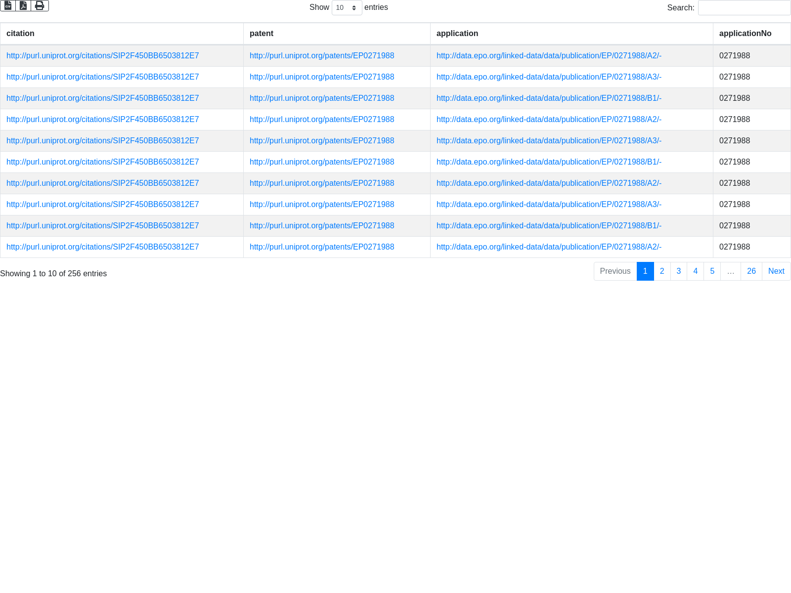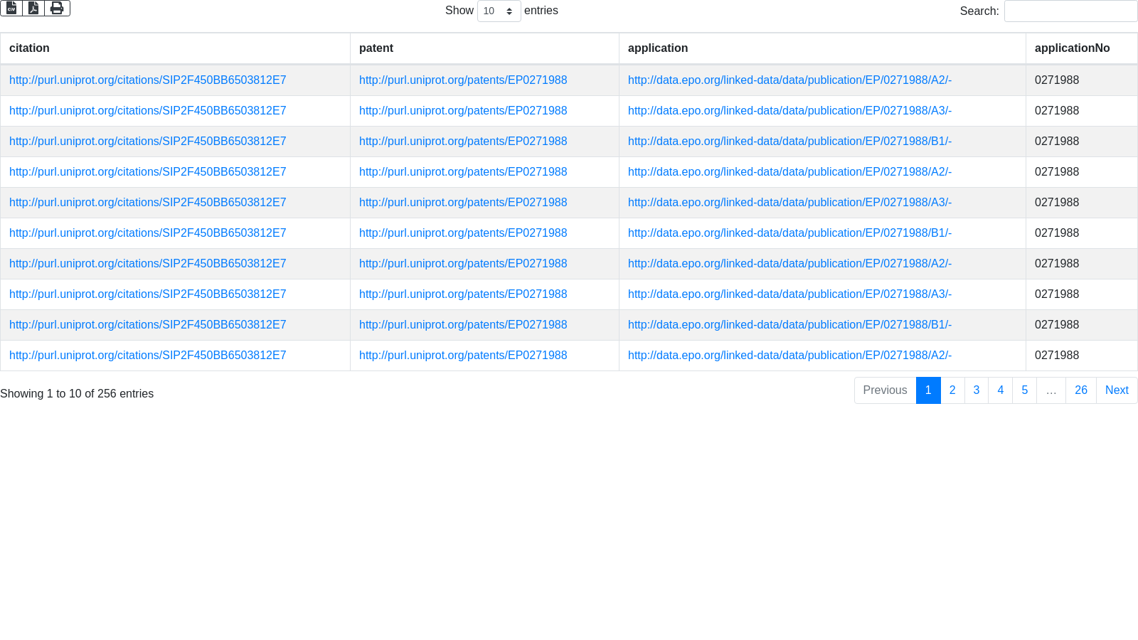 + " ?application patent:publicationNumber ?applicationNo \n"