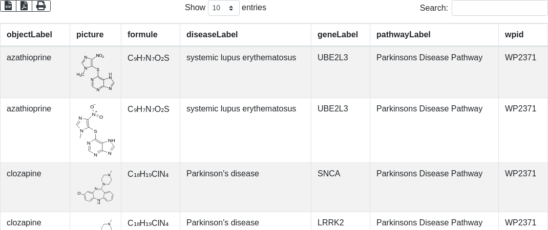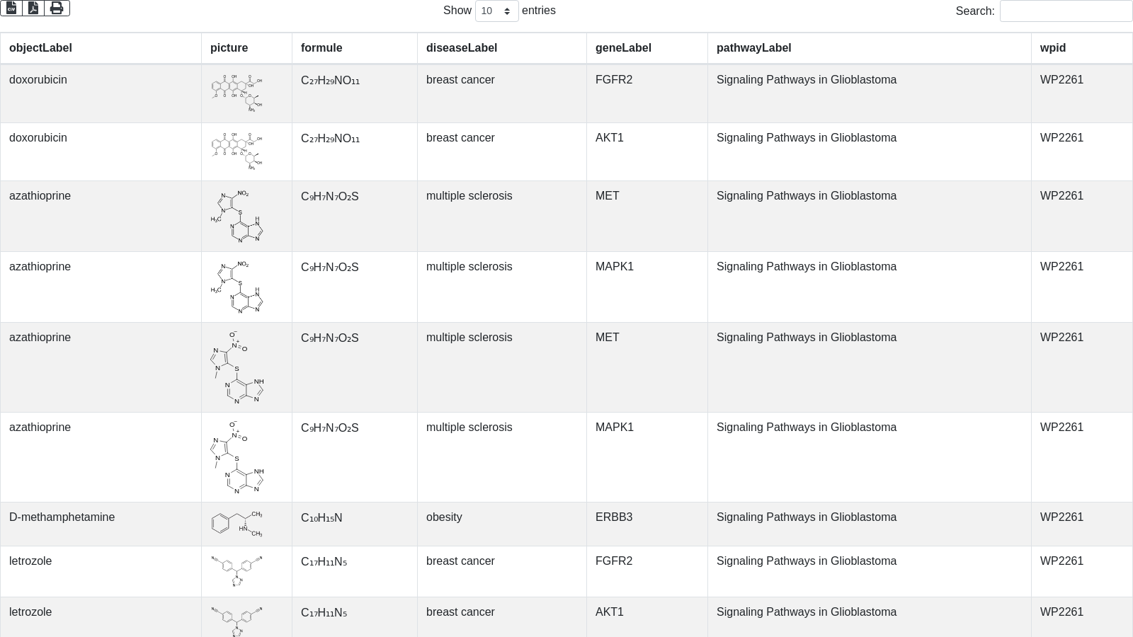 + "select ?objectLabel ?picture ?formule ?diseaseLabel ?geneLabel ?pathwayLabel ?wpid \n"