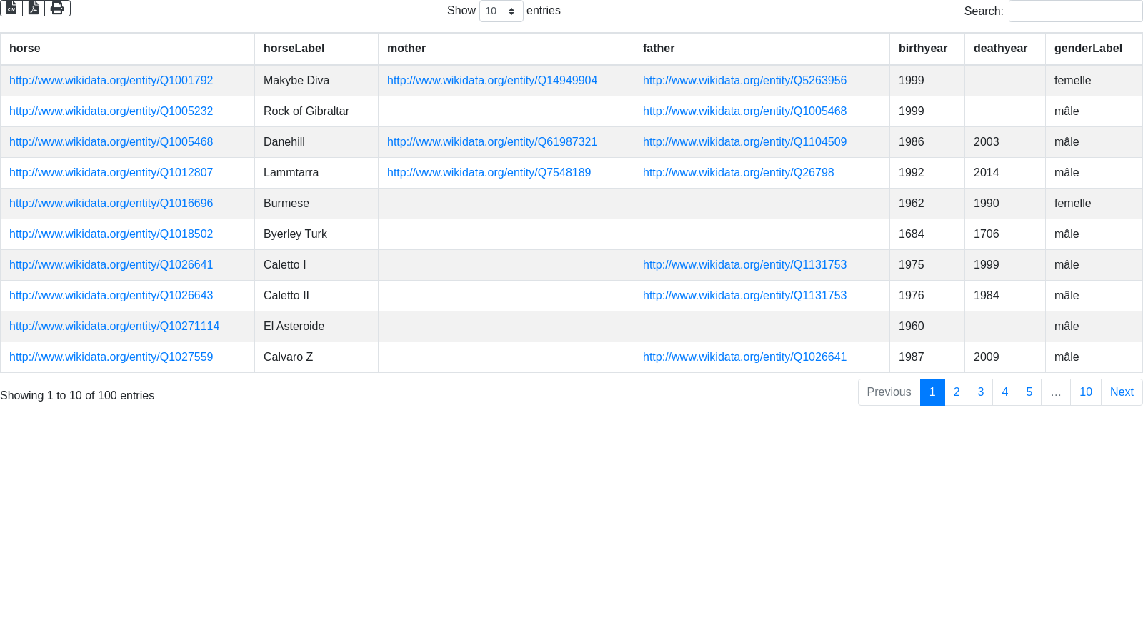 OPTIONAL{?horse wdt:P569 ?birthdate .} # P569 : Date de naissance