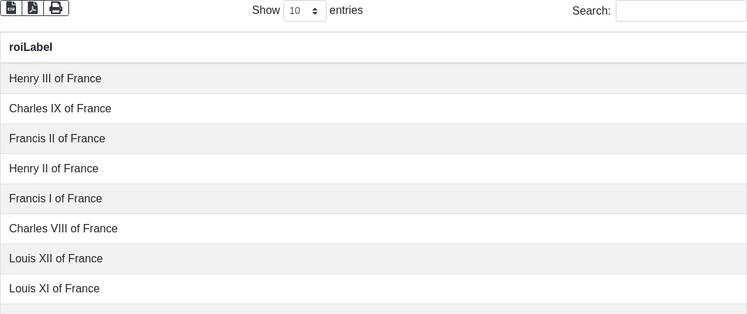 This query retrieves the kings of France.