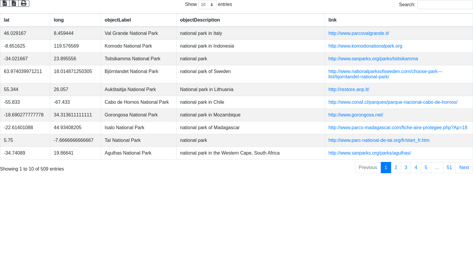 + "select ?lat ?long ?objectLabel ?objectDescription ?link \n"
