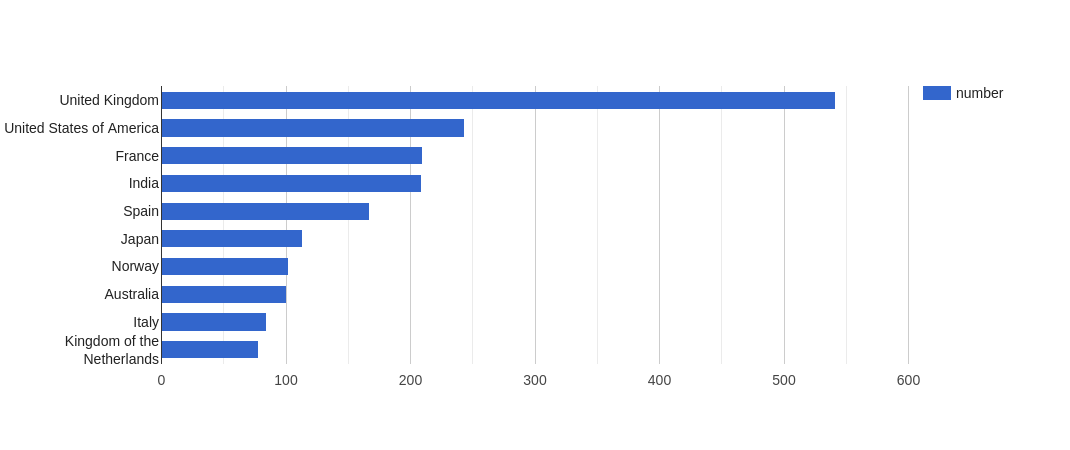 + "SELECT ?countryLabel (COUNT(DISTINCT ?child) As $number) \n"