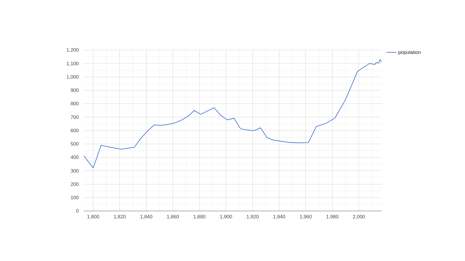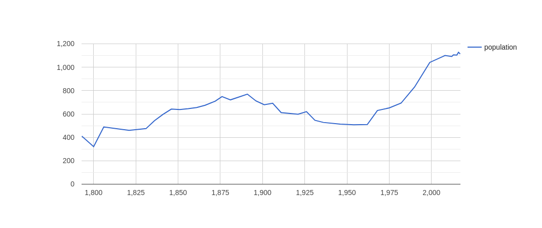 'select (YEAR(?date) as ?year) ?population '...