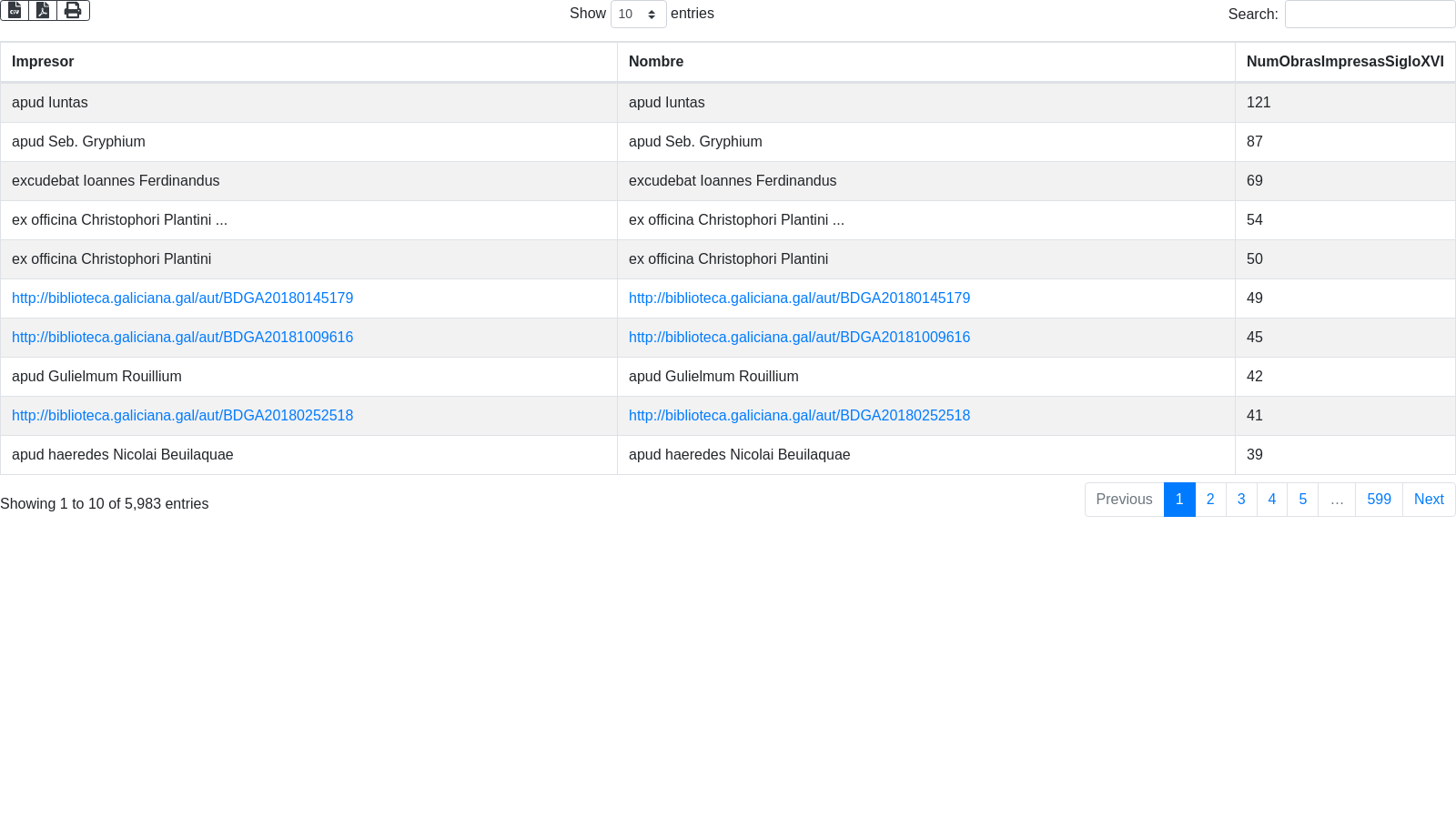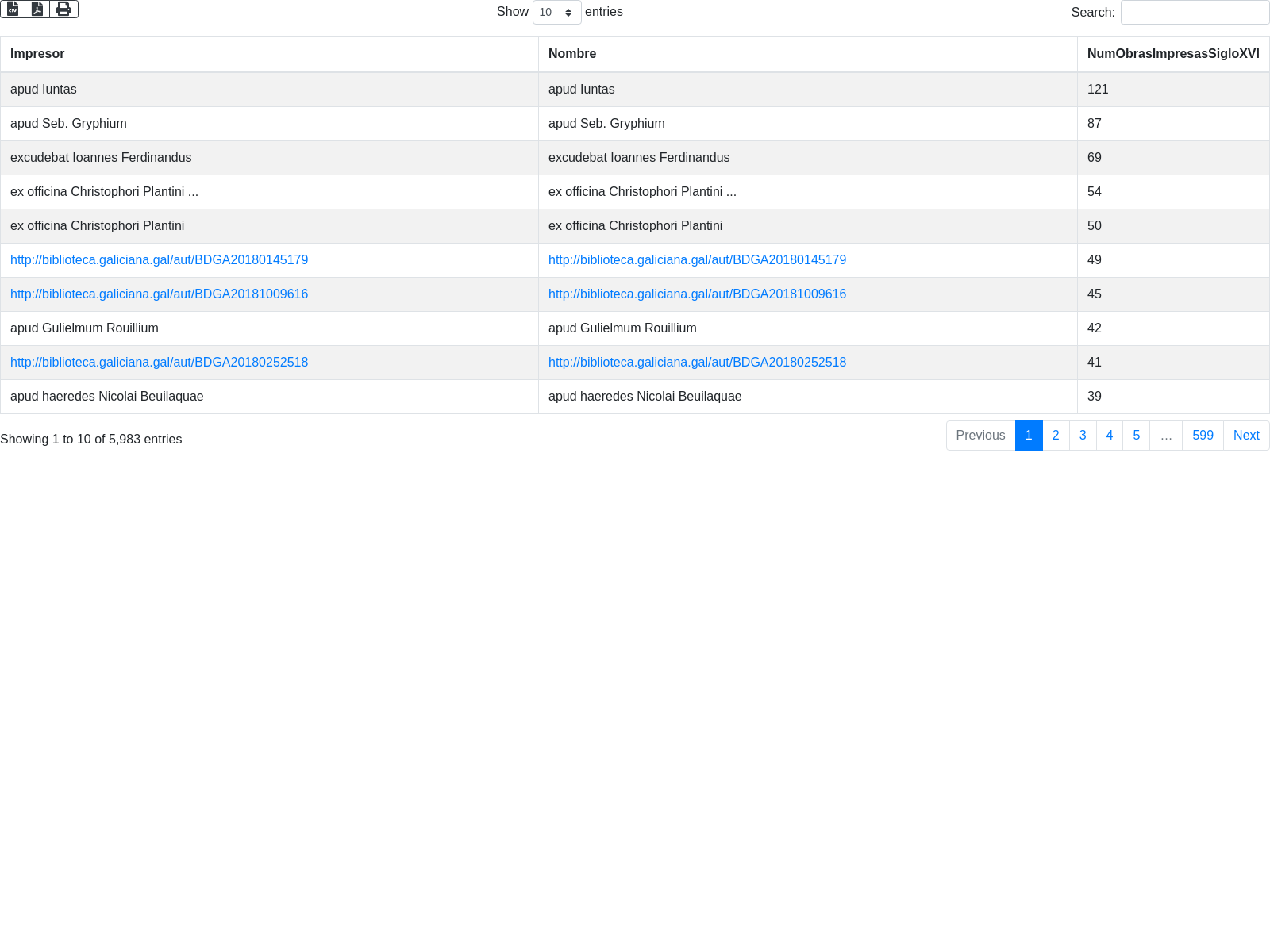 + "SELECT ?Impresor (COALESCE(MIN(?NombreImpresor), ?Impresor) AS ?Nombre) (count(?p) AS ?NumObrasImpresasSigloXVI) \n"