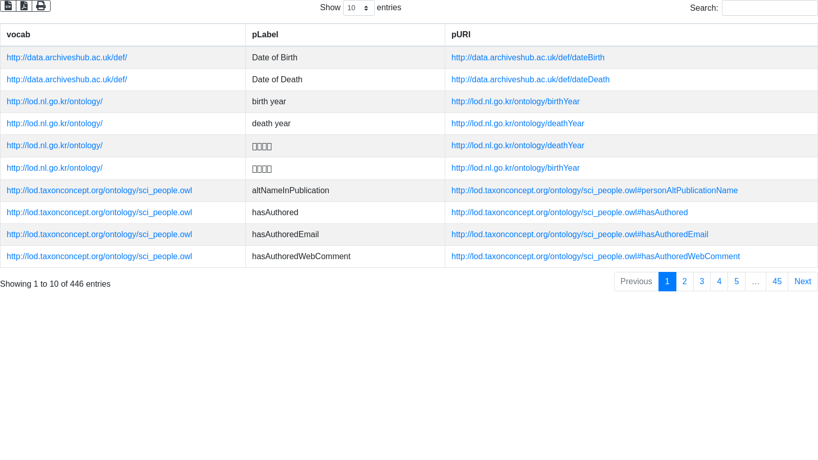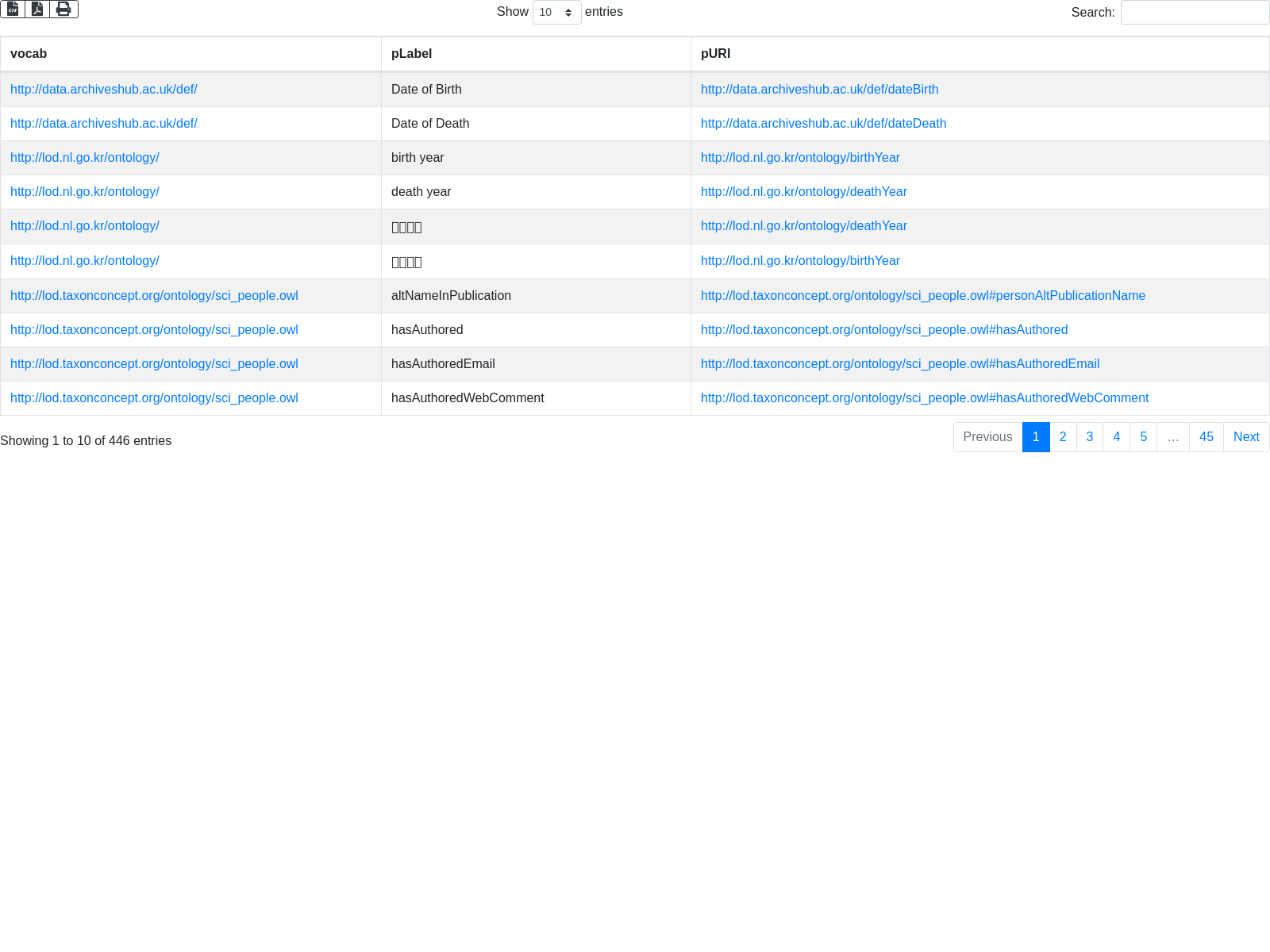 SELECT DISTINCT ?vocab ?pLabel ?pURI {