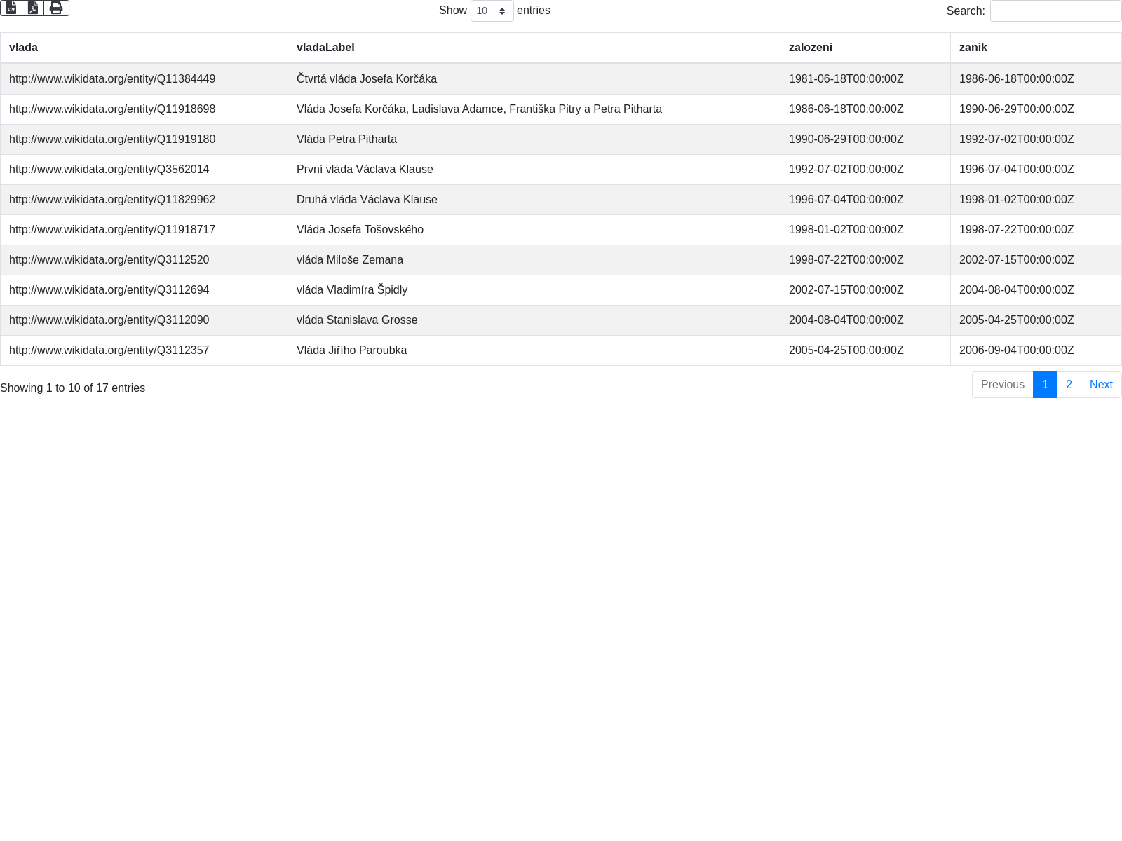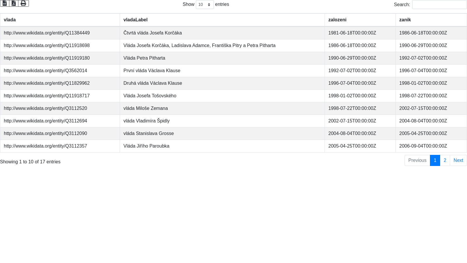 'SELECT ?vlada ?vladaLabel ?zalozeni ?zanik '...