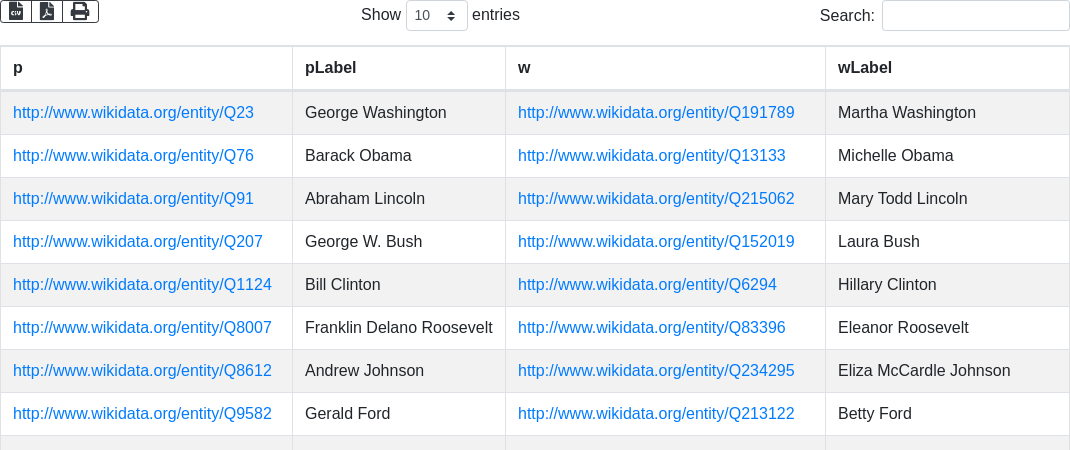 'SELECT ?p ?pLabel ?w ?wLabel WHERE { '...