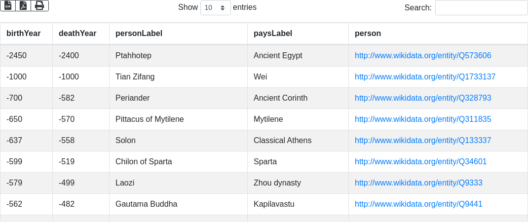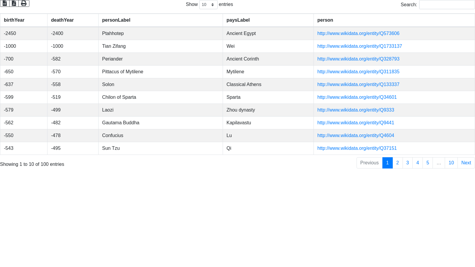 + "ORDER BY ?birthYear ?deathYear \n"