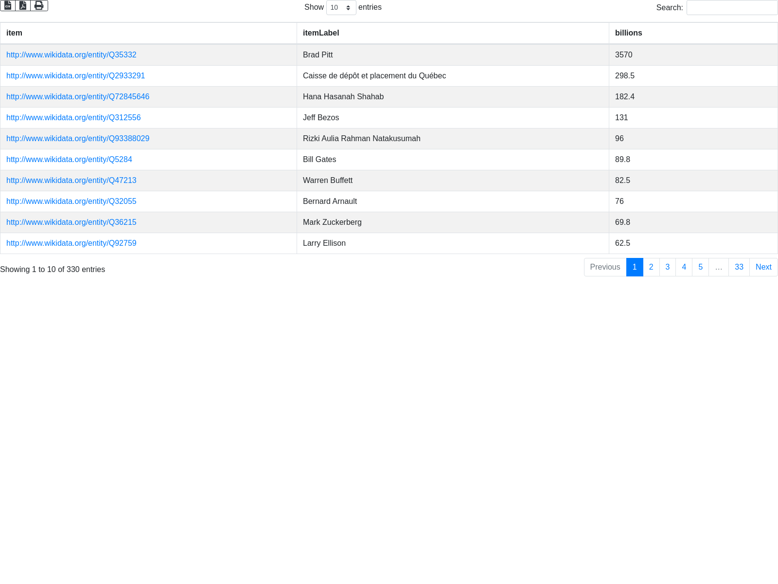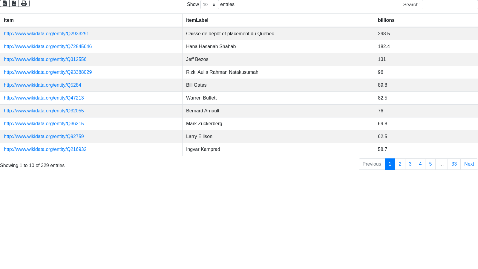 + "SELECT ?item ?itemLabel ?billions \n"