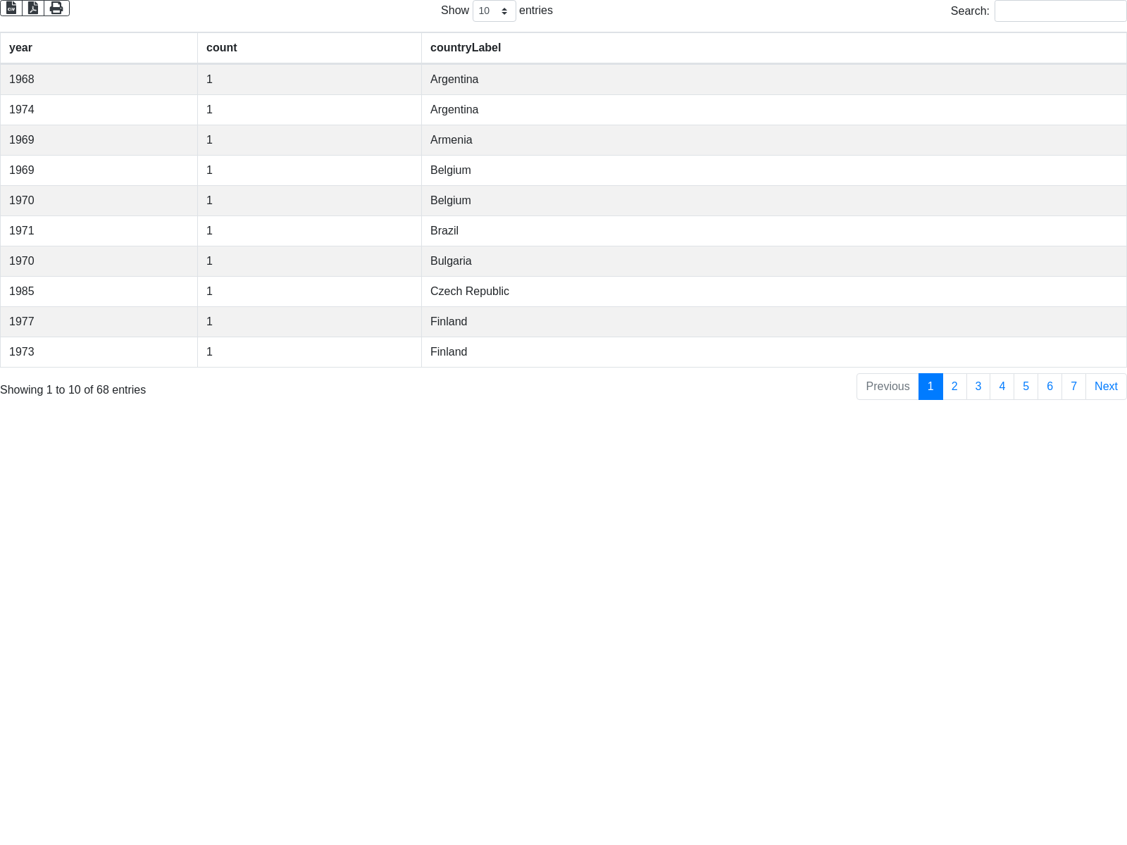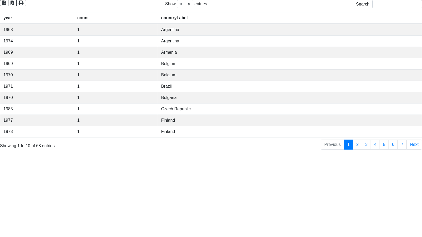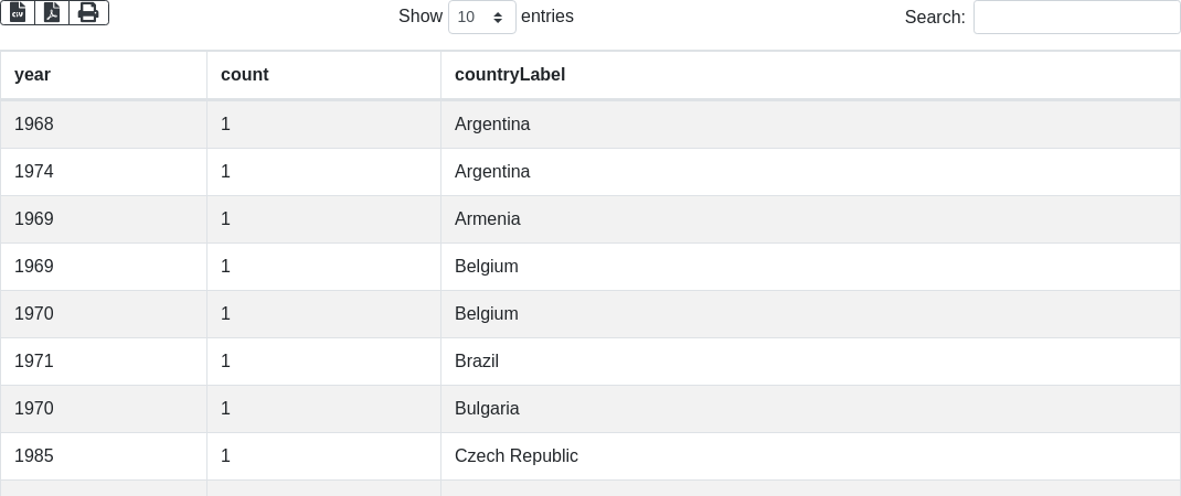 + "SELECT (SAMPLE(?year) AS ?year) (COUNT(?_country) AS ?count) (SAMPLE(?_countryLabel) AS ?_countryLabel) WHERE { \n"