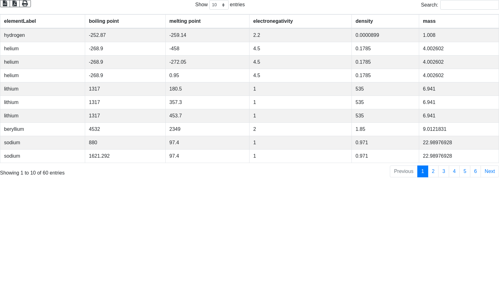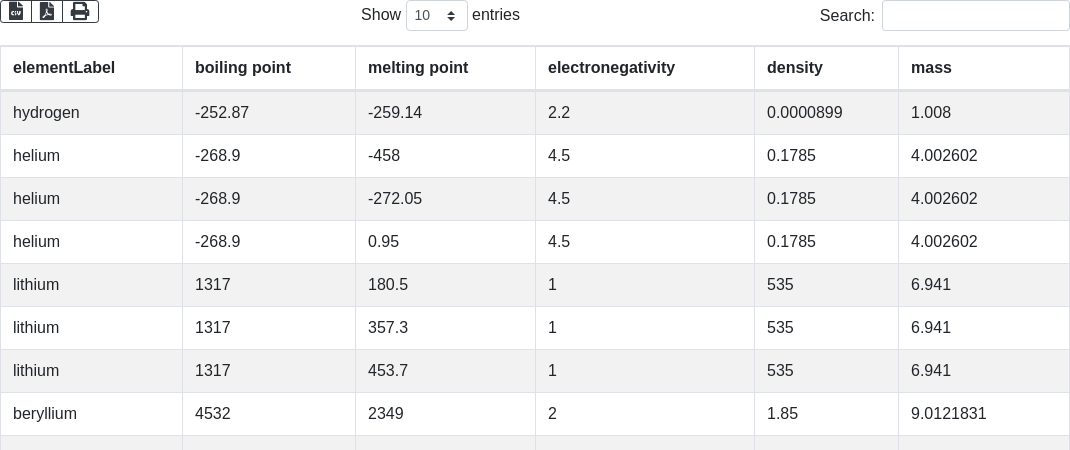 'SELECT ?elementLabel ?boiling_point ?melting_point ?electronegativity ?density ?mass WHERE { '...