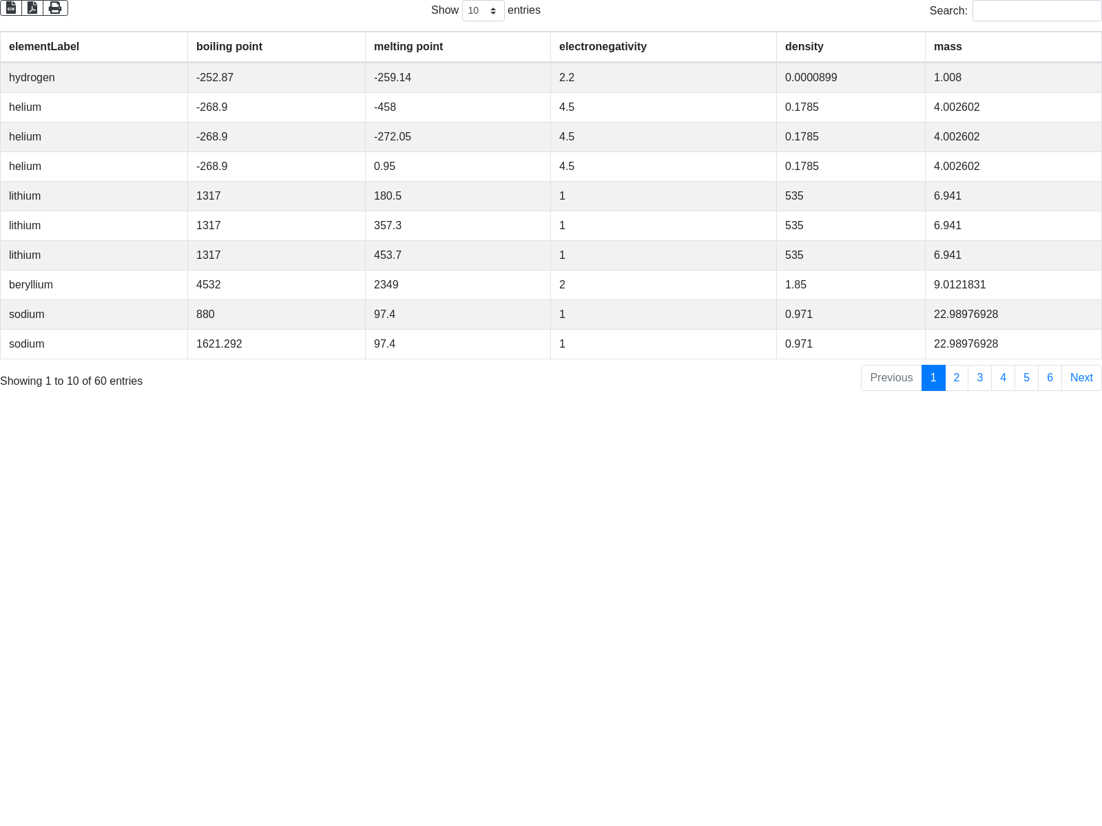 SELECT ?elementLabel ?boiling_point ?melting_point ?electronegativity ?density ?mass WHERE {
