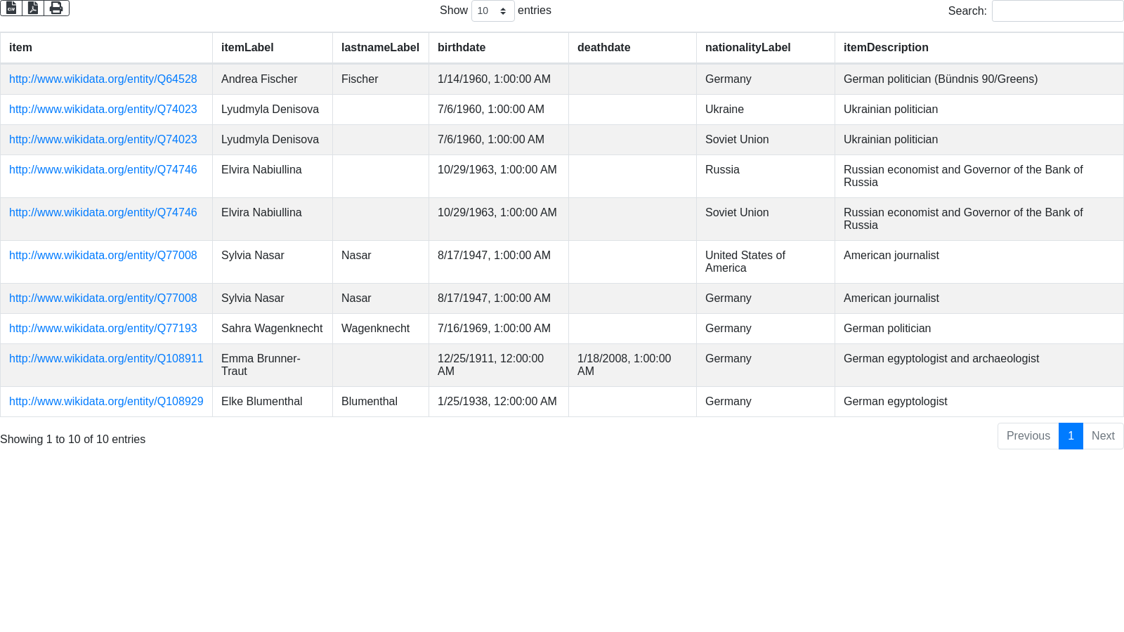 + "SELECT ?item ?itemLabel ?lastnameLabel ?birthdate ?deathdate ?nationalityLabel ?itemDescription WHERE { \n"