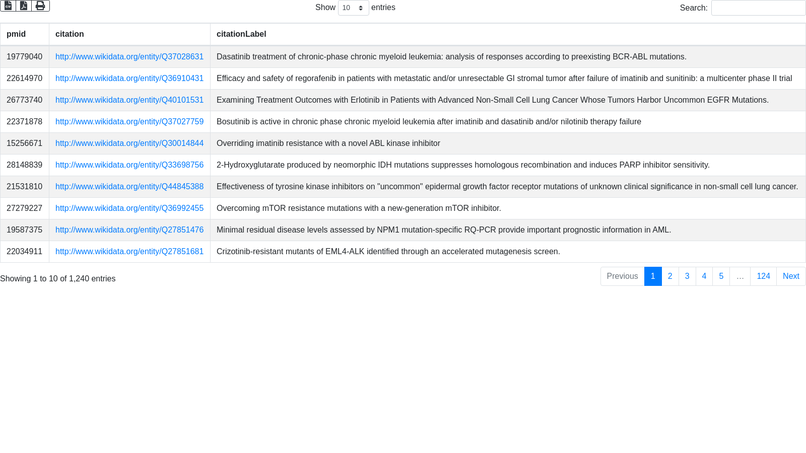 SELECT DISTINCT ?pmid ?citation ?citationLabel