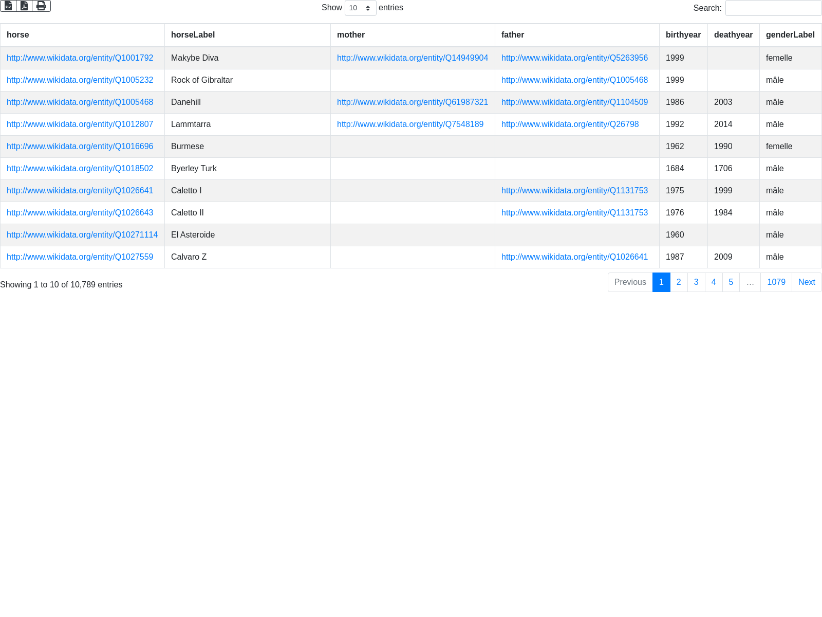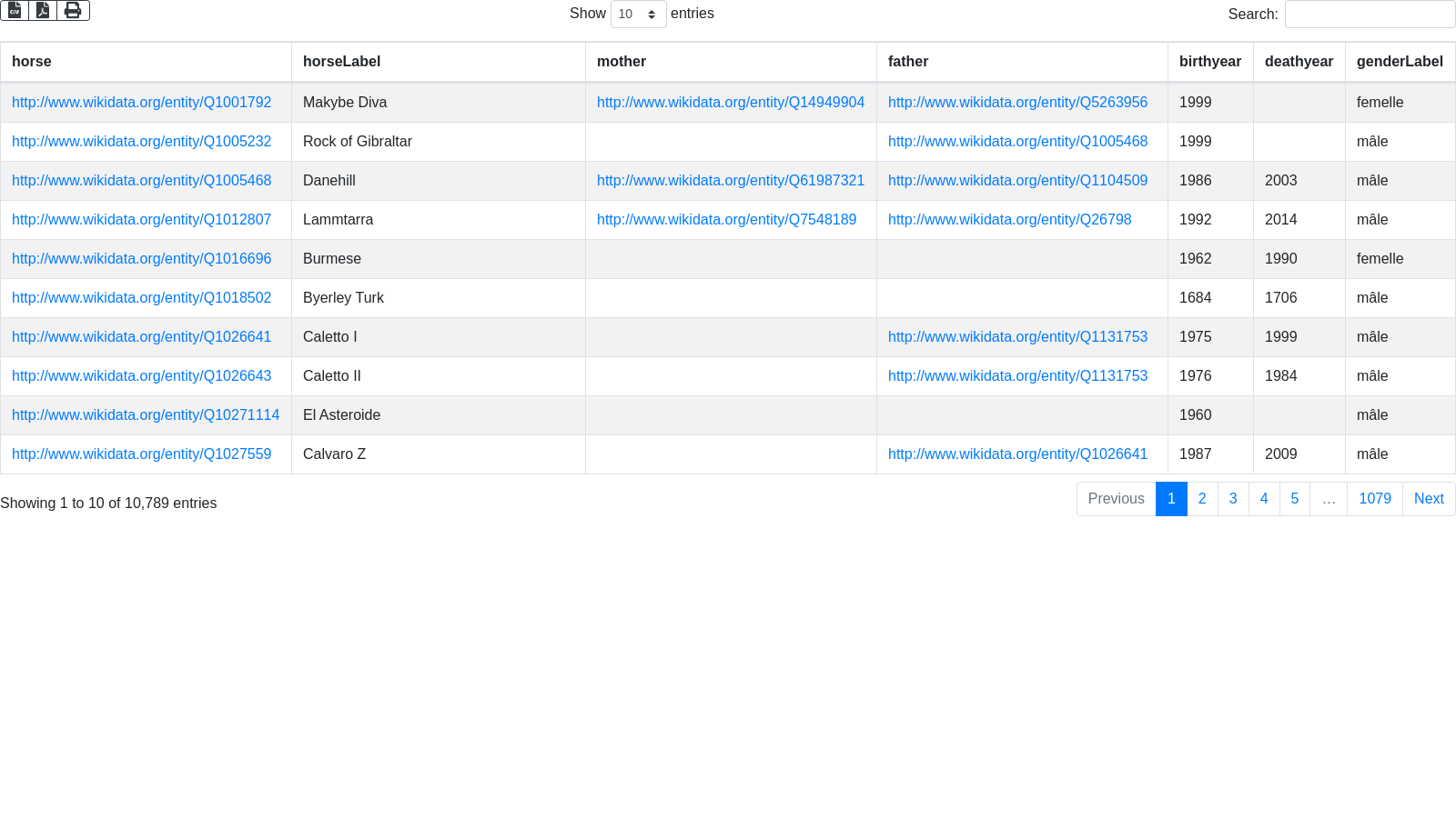 OPTIONAL{?horse wdt:P569 ?birthdate .} # P569 : Date de naissance