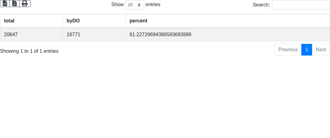 SELECT (COUNT(?disease) AS ?total) (SUM(?ref) AS ?byDO) (100*?byDO/?total AS ?percent)