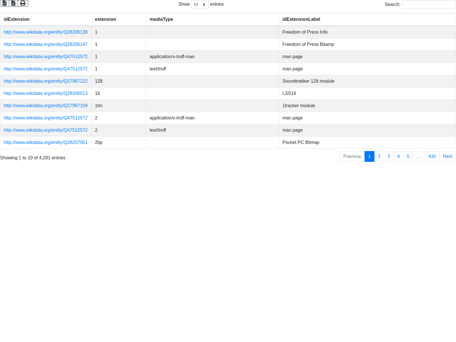 SELECT DISTINCT ?idExtension ?extension ?mediaType ?idExtensionLabel