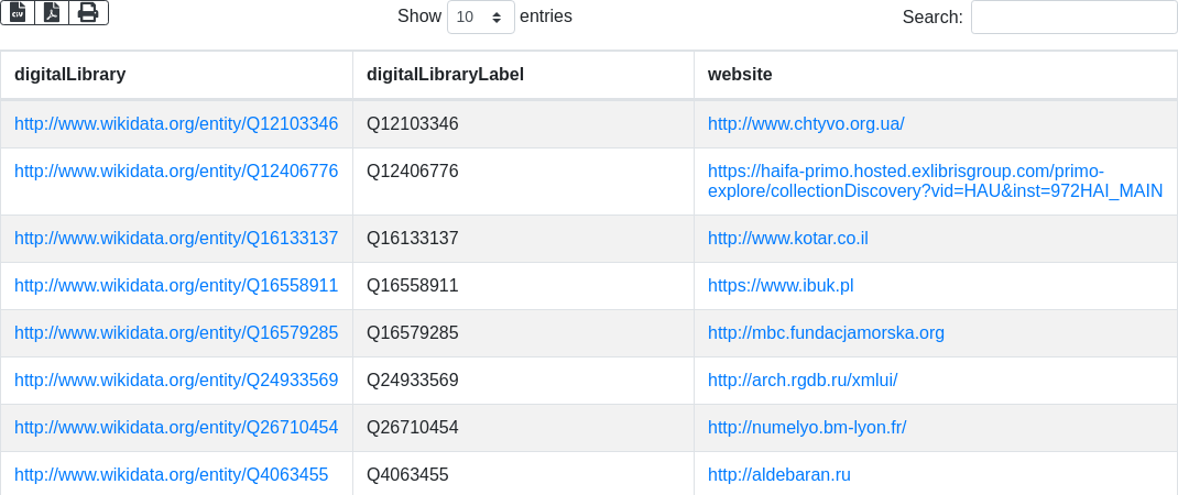 'SELECT DISTINCT ?digitalLibrary ?digitalLibraryLabel ?website '...