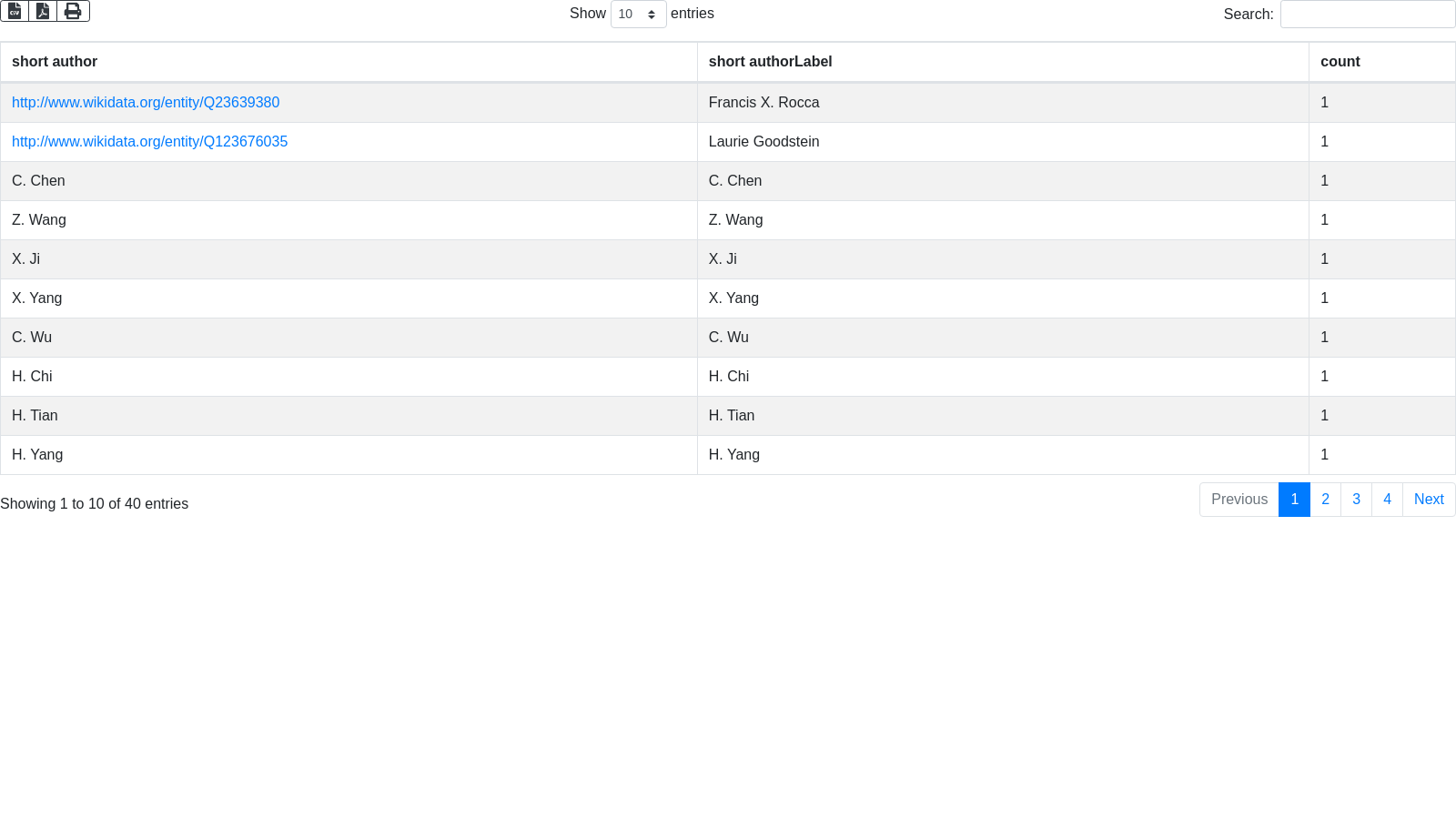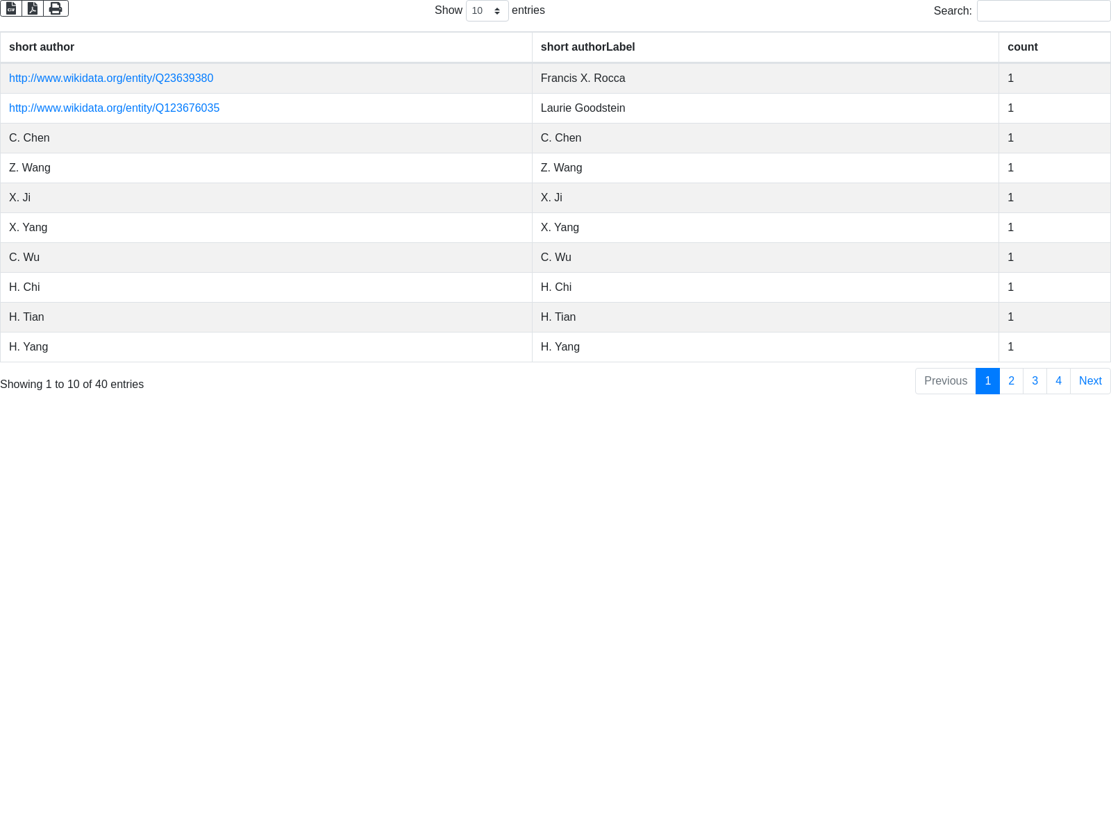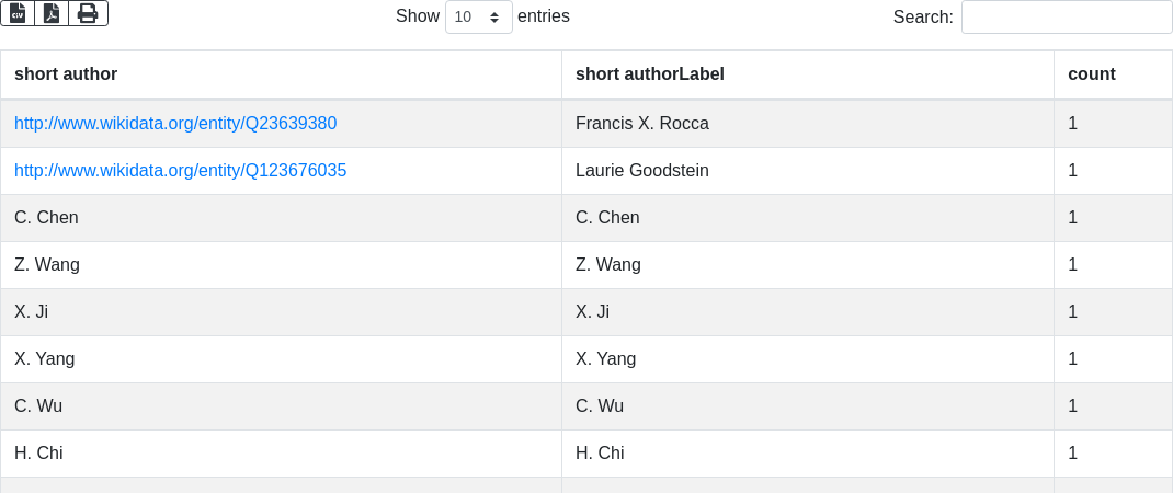 + "GROUP BY ?short_author ?short_authorLabel \n"
