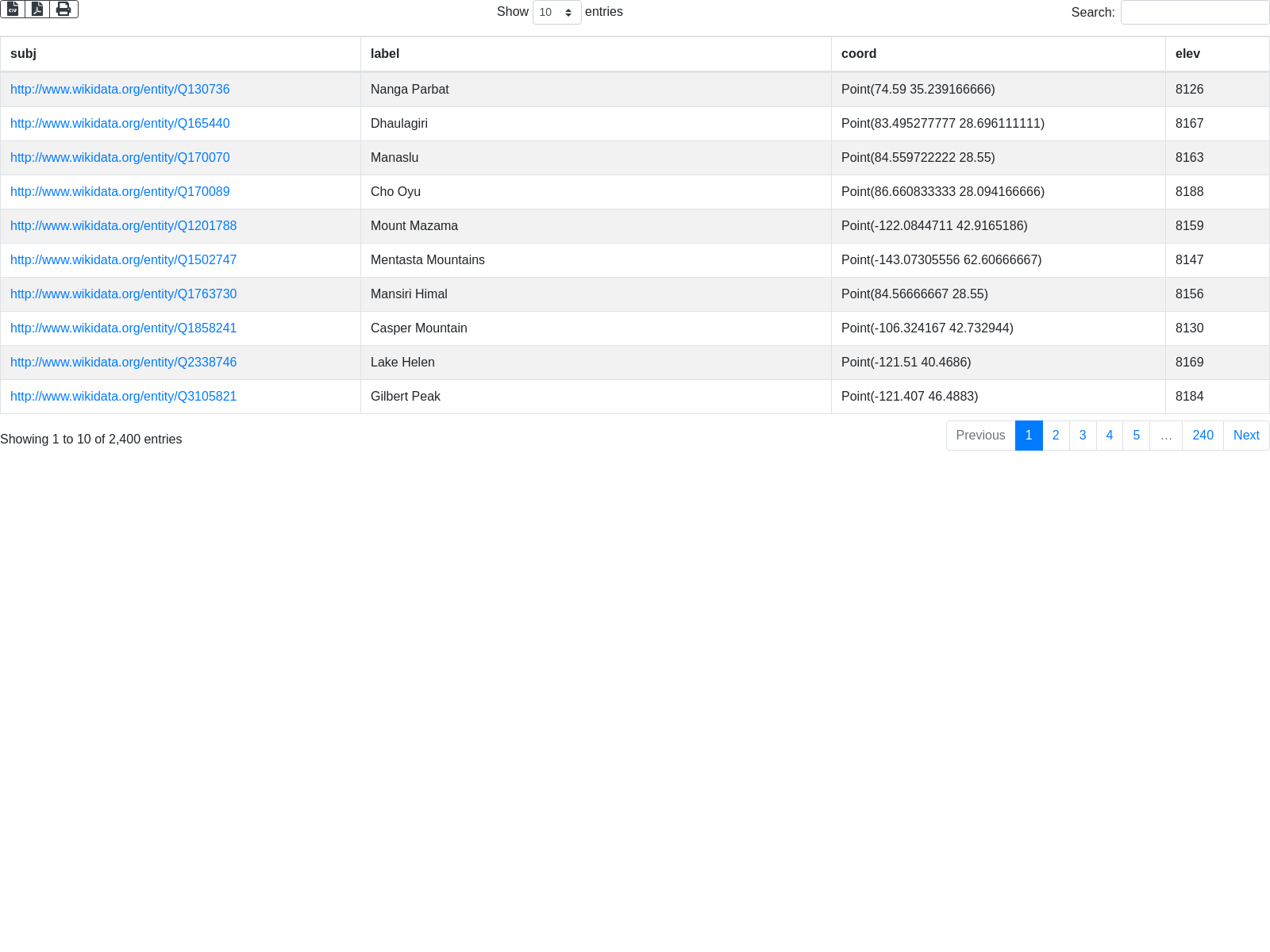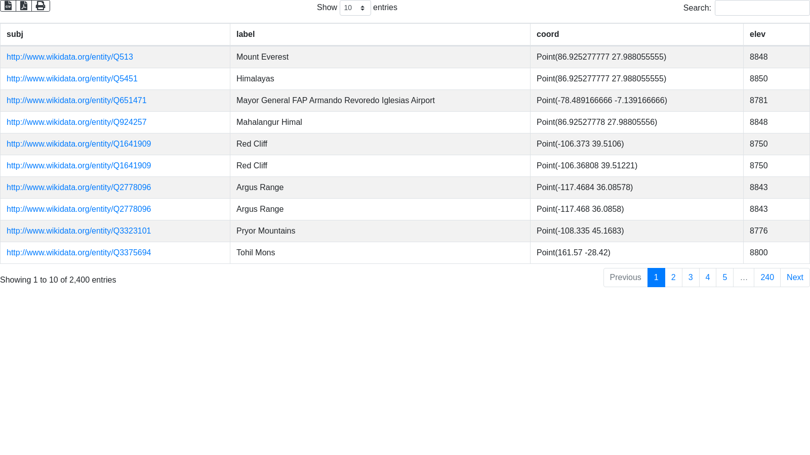 ' ?subj wdt:P2044 ?elev filter(?elev > 8000) . '...
