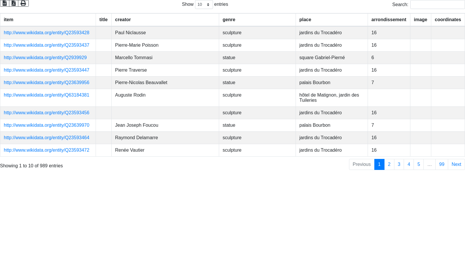 SELECT ?item ?titleL ?creatorL ?genreL ?placeL ?arr ?img ?coord