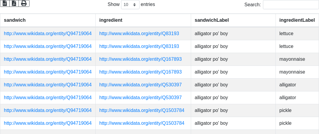'SELECT ?sandwich ?ingredient ?sandwichLabel ?ingredientLabel '...