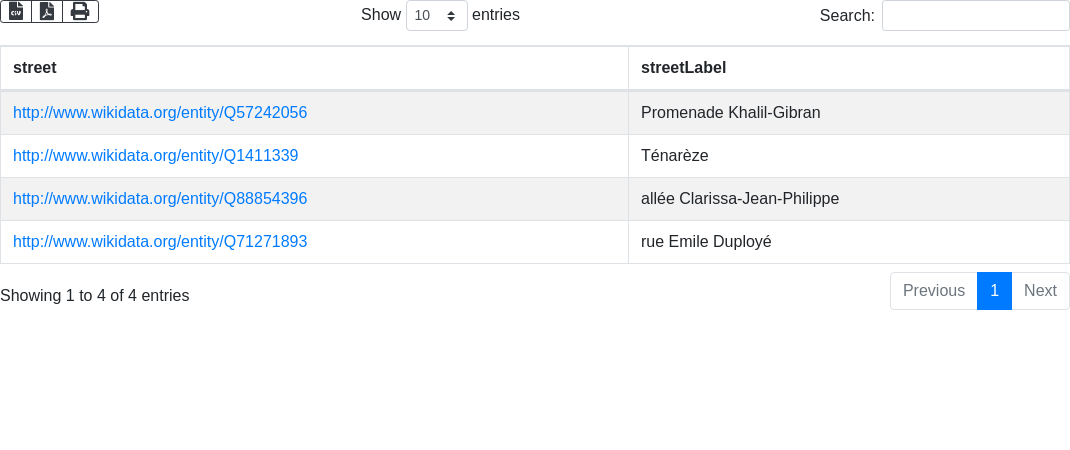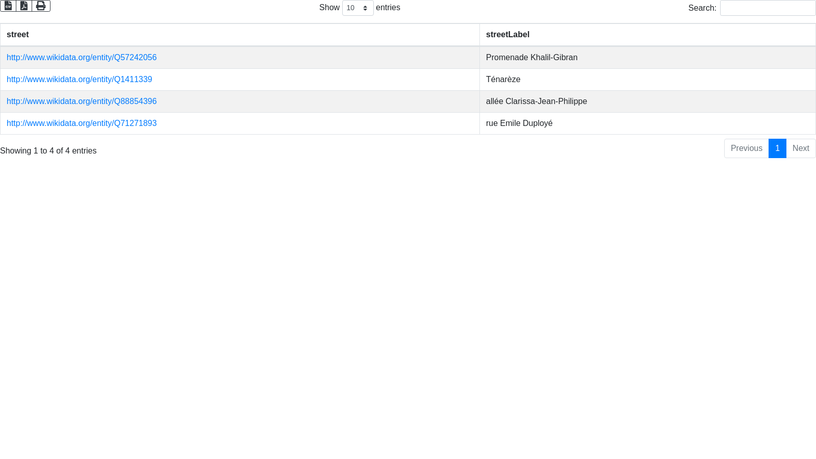 + " MINUS { ?street wdt:P131 [] } . \n"