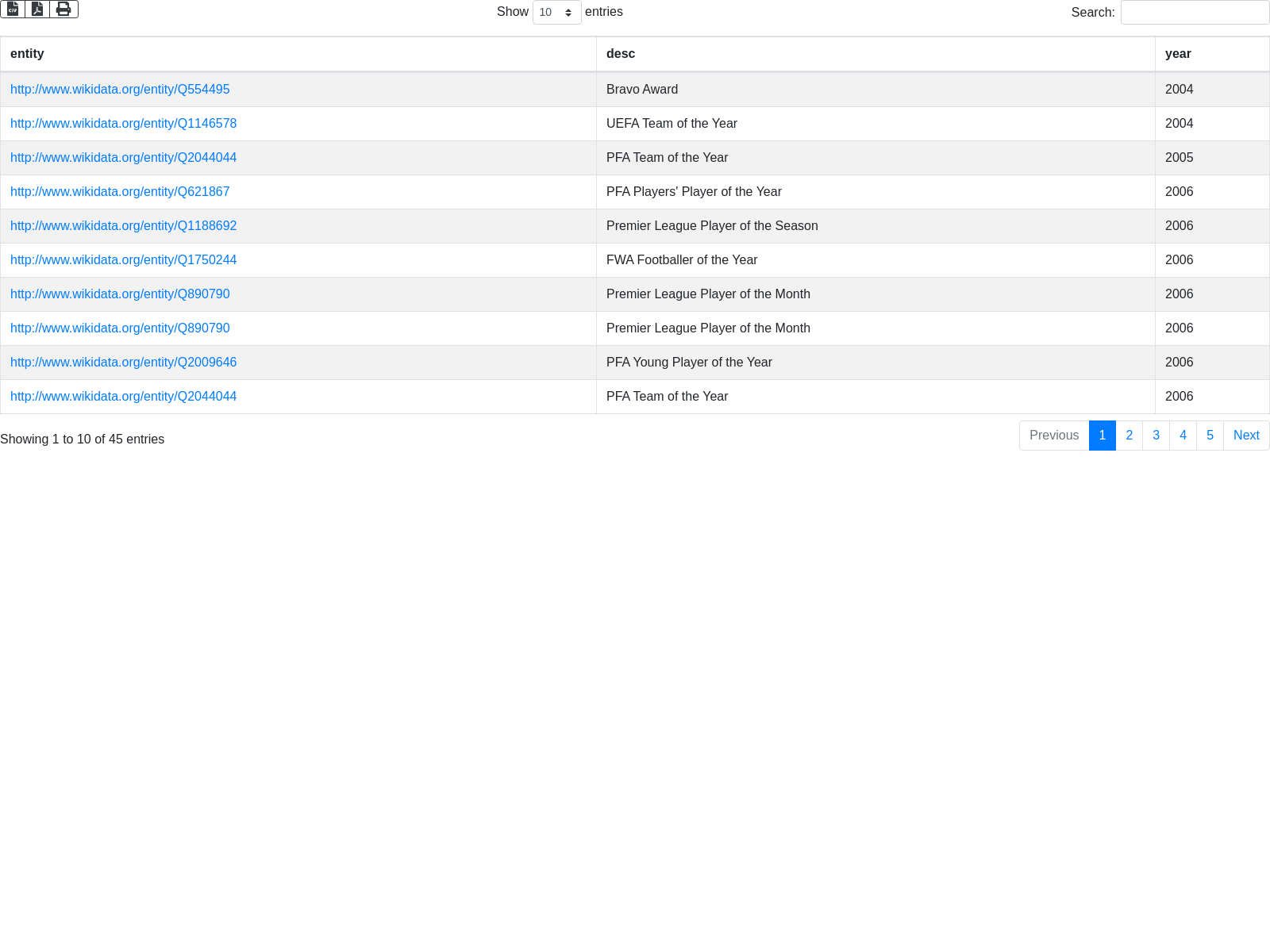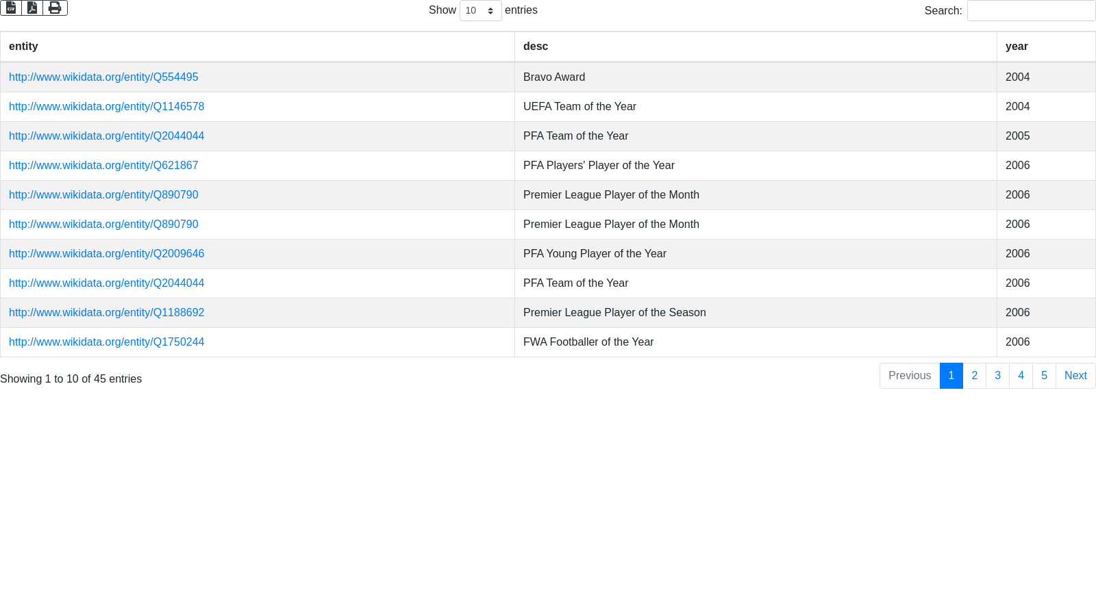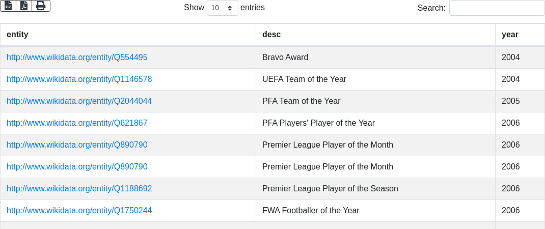 'SELECT ?entity ?desc (year(?date) as ?year) { '...