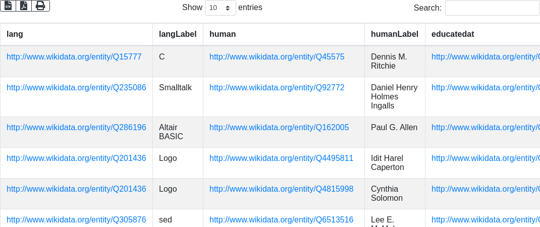 'SELECT ?lang ?langLabel ?human ?humanLabel ?educatedat ?educatedatLabel ?coords '...