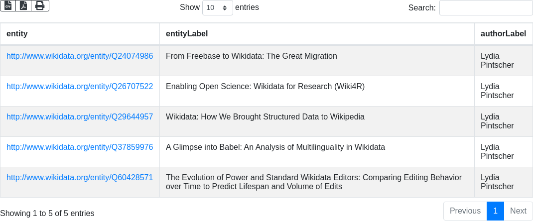' VALUES ?author {wd:Q18016466} #initialize "?author with the Wikidata item "Lydia Pintscher" '...