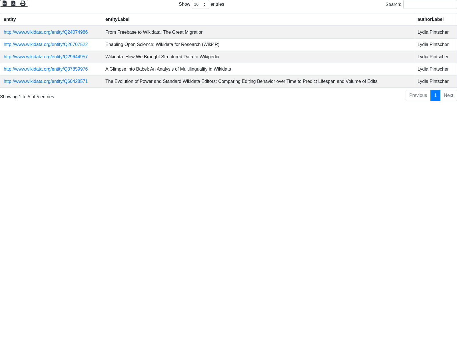 SELECT ?entity ?entityLabel ?authorLabel WHERE {