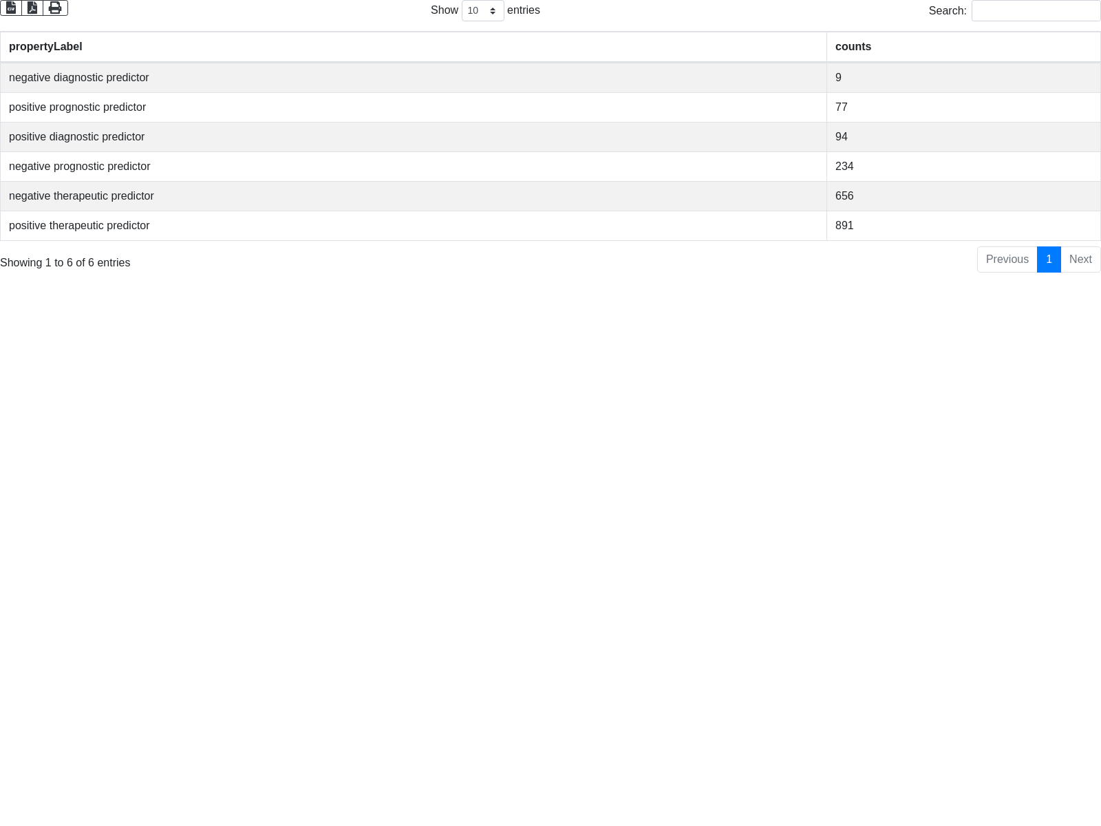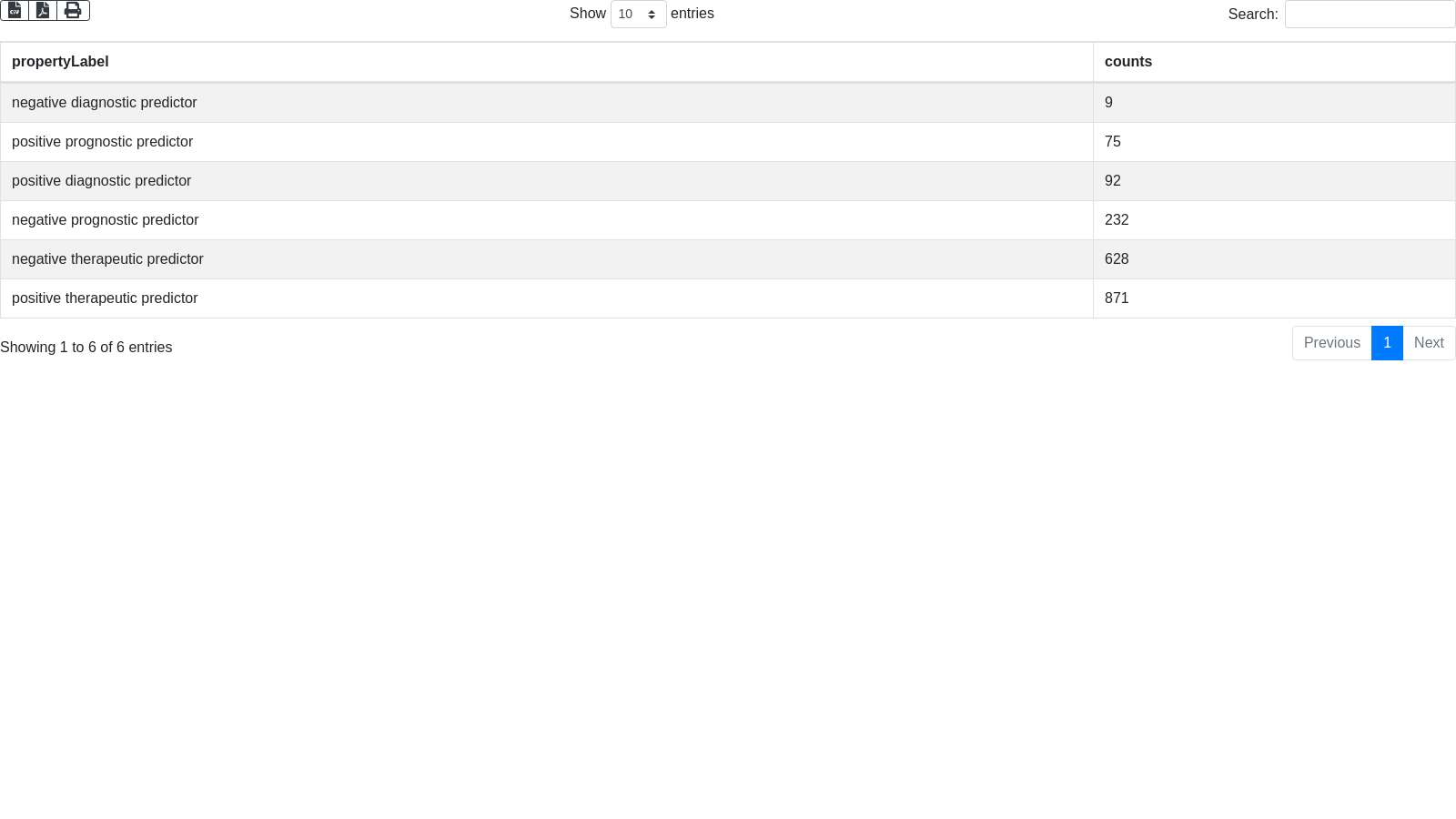 SELECT ?propertyLabel (count(?prognostic_type) as ?counts)