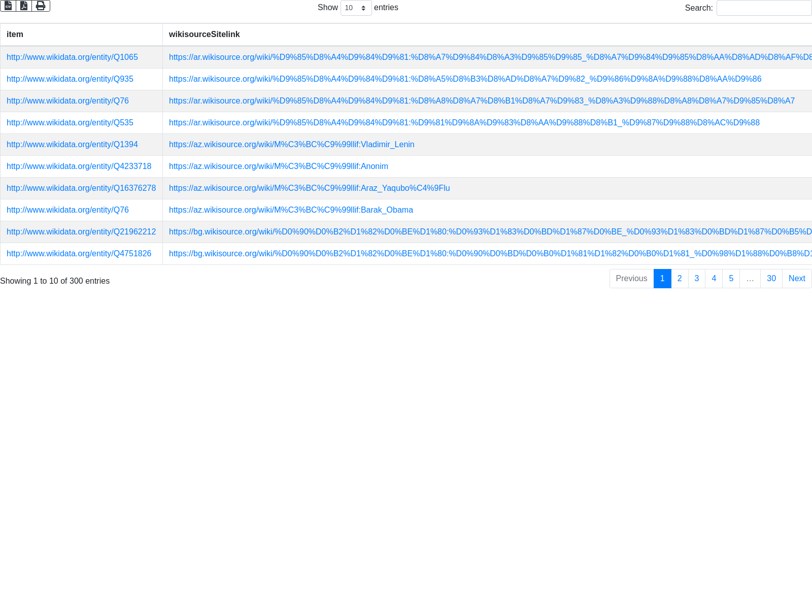 'SELECT DISTINCT ?item ?wikisourceSitelink ?wikisourceLanguage WHERE { '...